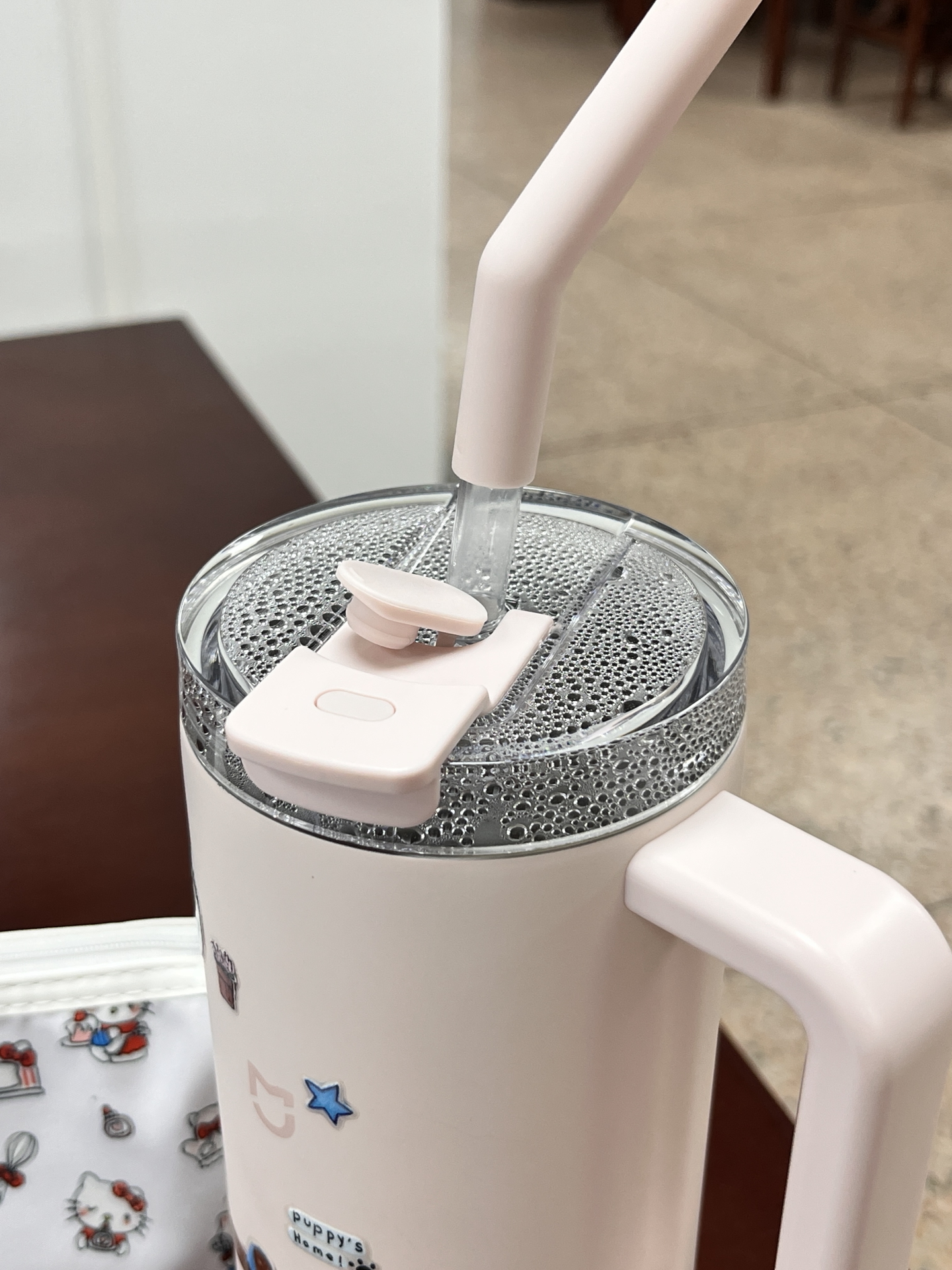 最近在图书馆自习,发现这个大容量水杯还挺实用~ 颜值我很喜欢,自己贴了些小贴纸,更可爱了✨。 1000ml容量,装满水待一天饮水量够够的。有吸管口和直饮口,我常用吸管口,喝水方便些~ 不过杯身大,放小包包里不太好装,得单独拿或者放书包侧袋。 要是和我一样常泡图书馆、教室的,用来装水还挺合适🥰。