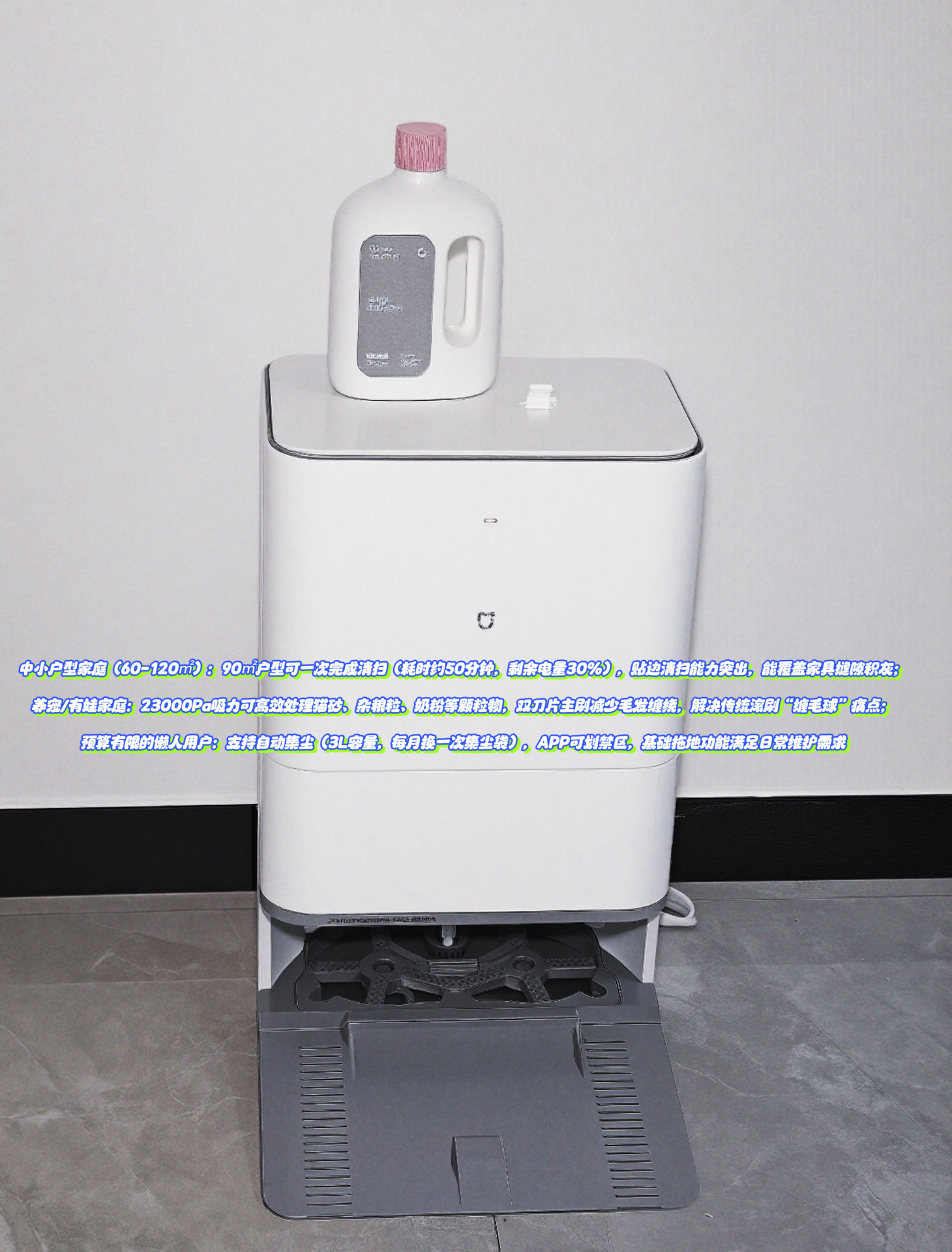 小米M40S扫地机器人综合使用总结 一、核心定位与适用场景 小米M40S是一款定价2500元左右、主打“务实性价比”的扫地机器人,核心优势在于强吸力、基础自清洁功能与中小户型适配性,适合以下用户群体: 中小户型家庭(60-120㎡):90㎡户型可一次完成清扫(耗时约50分钟,剩余电量30%),贴边清扫能力突出,能覆盖家具缝隙积灰; 养宠/有娃家庭:23000Pa吸力可高效处理猫砂、杂粮粒、奶粉等颗...