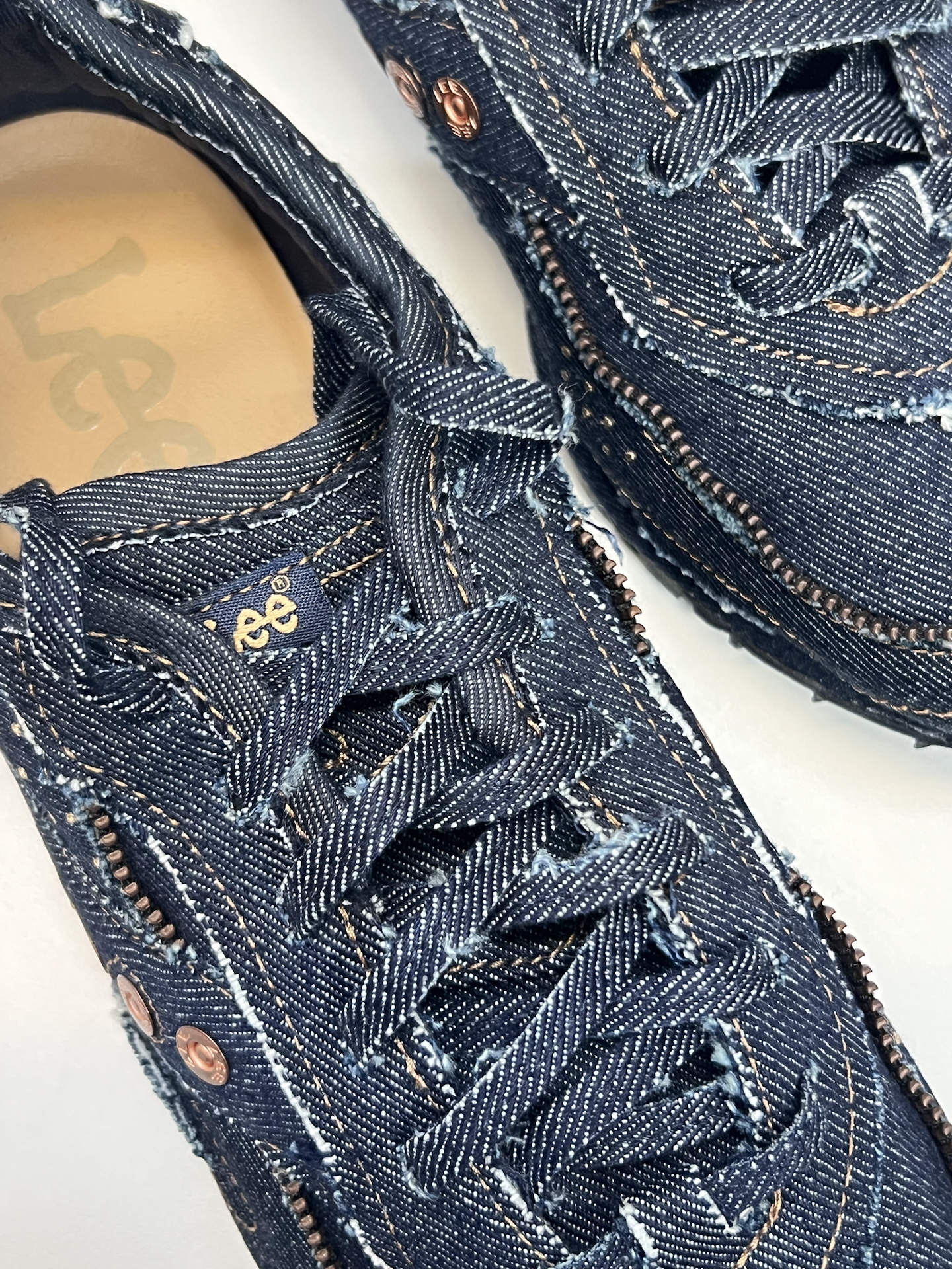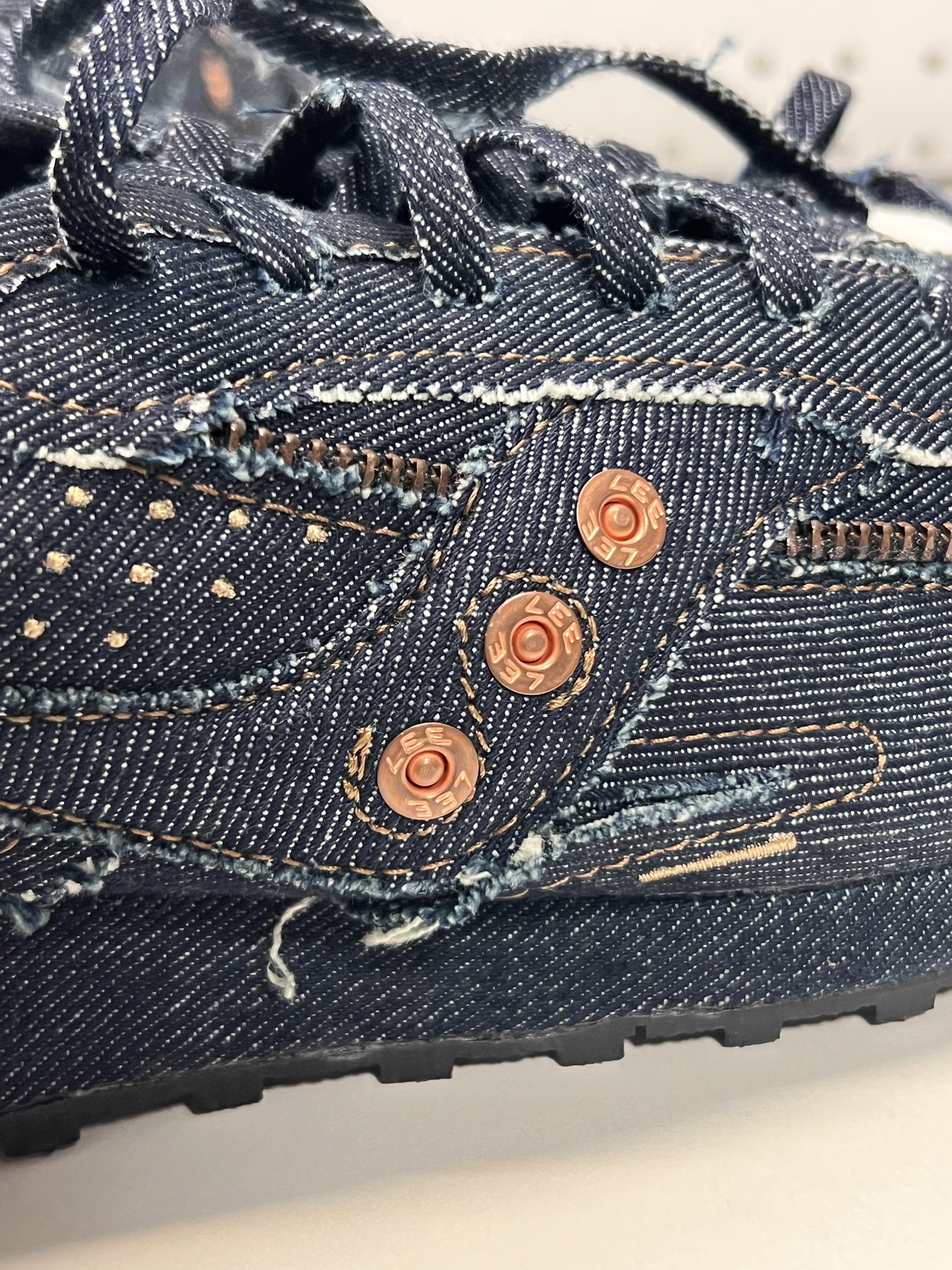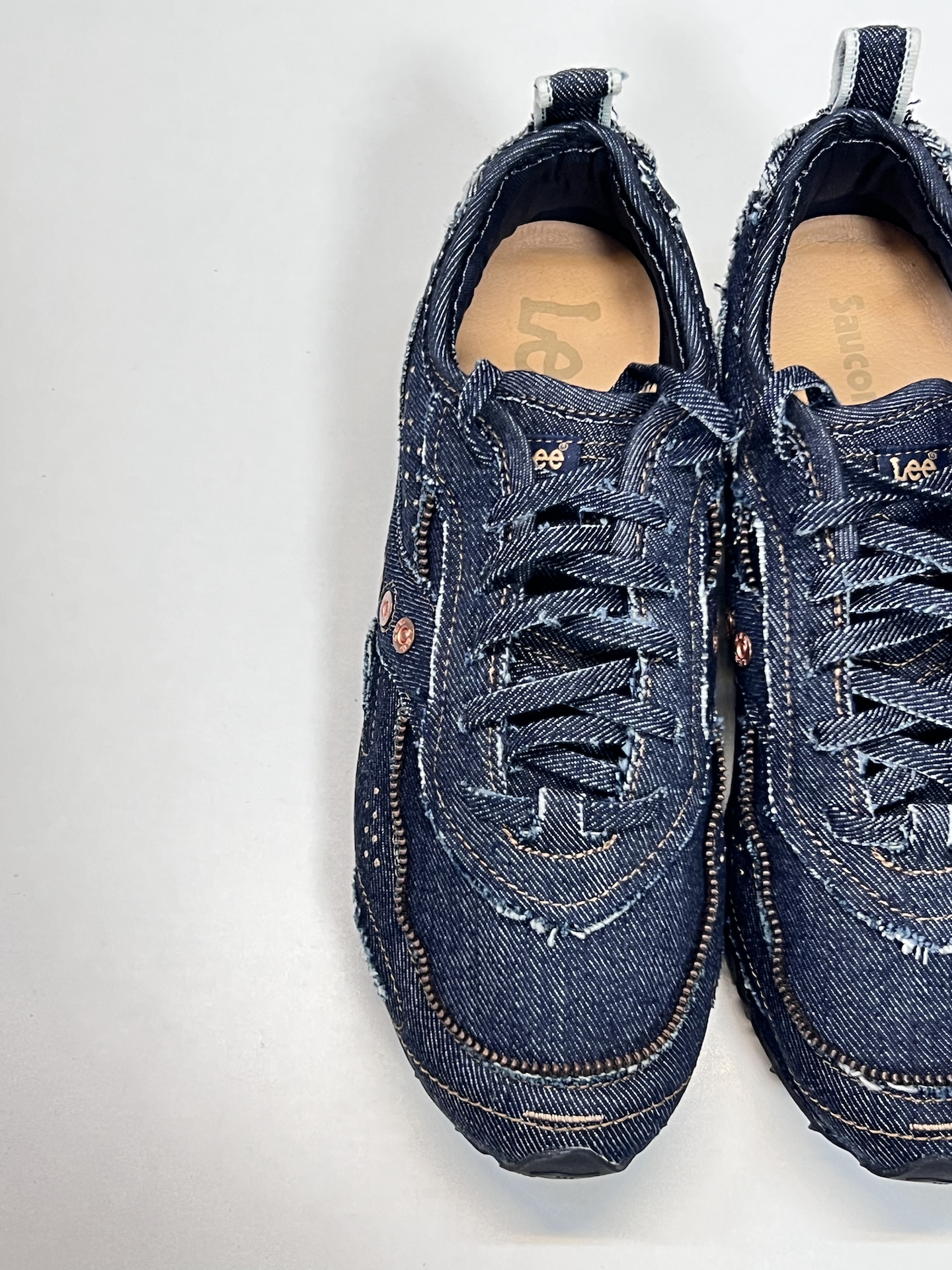 谁懂啊家人们😎!我挖到索康尼和Lee联名跑鞋,全牛仔布鞋面+黄铜拉链,还有磨白设计,复古感直接拉满~不过trainer 80鞋型得买大一码,我一开始没注意就踩雷啦,宝子们别学我🥹!
