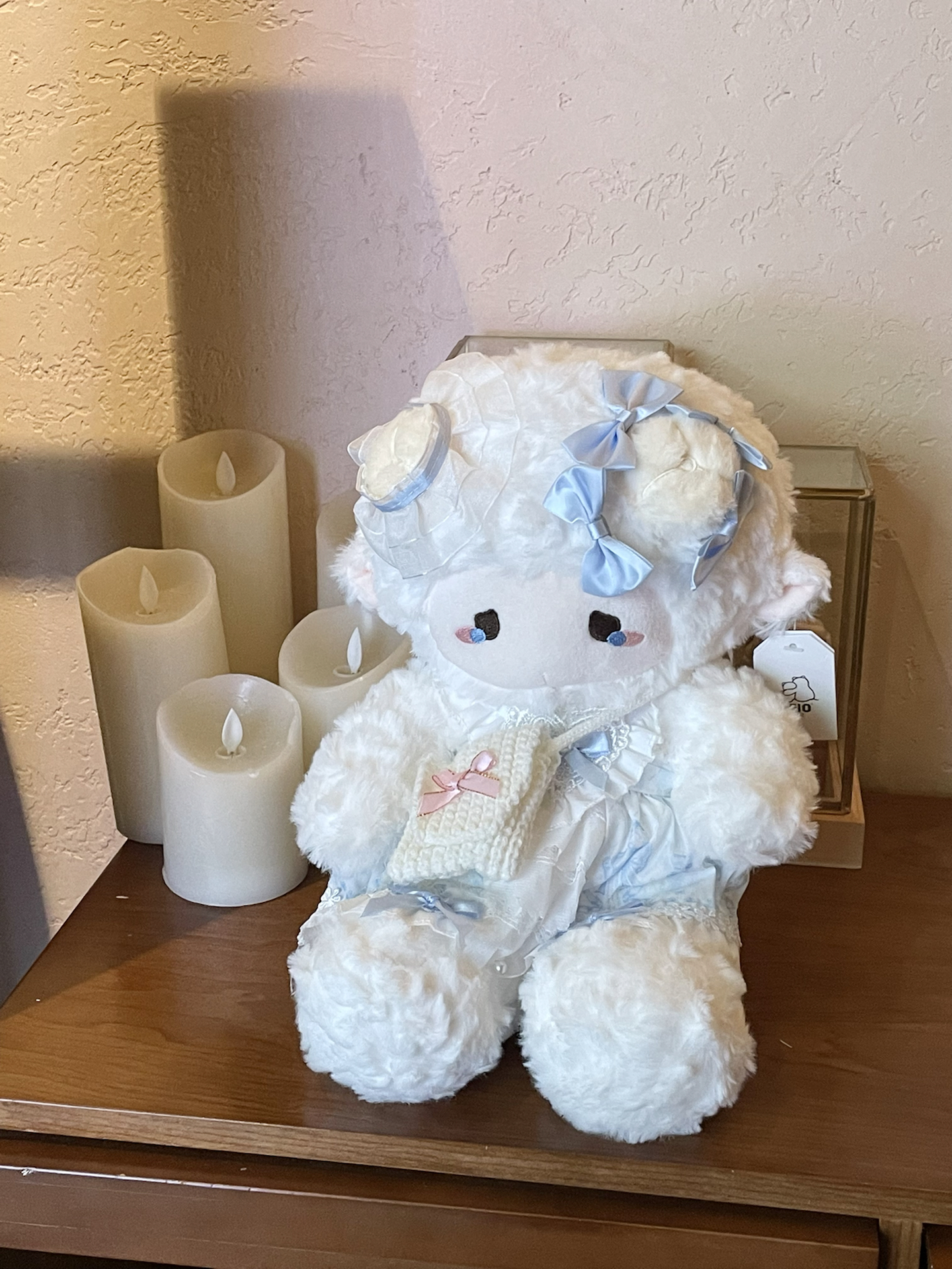 是择偶记的泡芙小羊 精致的礼盒 打开是软乎乎小可爱 需要自己动手给它穿上衣服 戴上配饰 摆在桌子上看着哭唧唧的小羊 看似脆弱 实际在释放情绪 用毛茸茸的身体听我倾诉心事 我觉得送自己 或者生日送朋友dou蛮适合