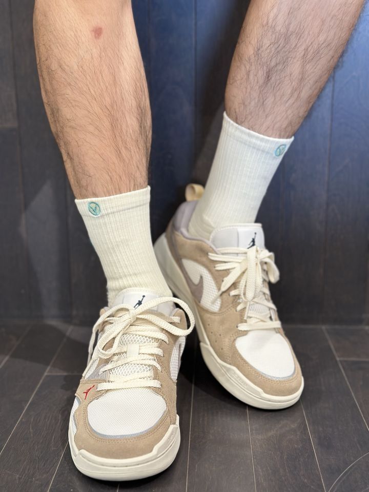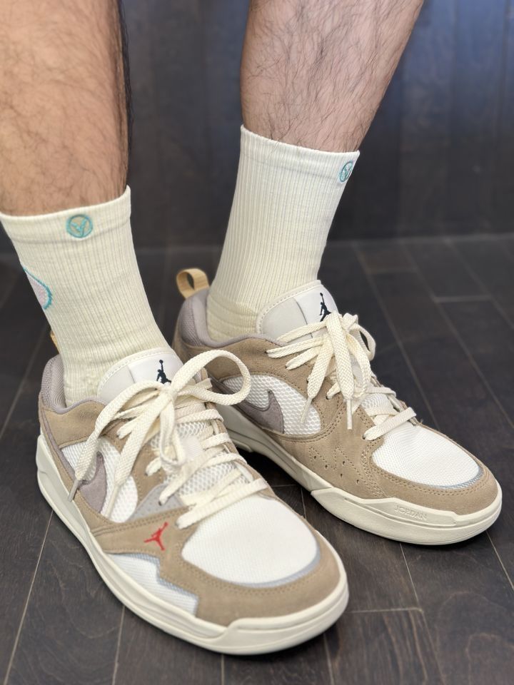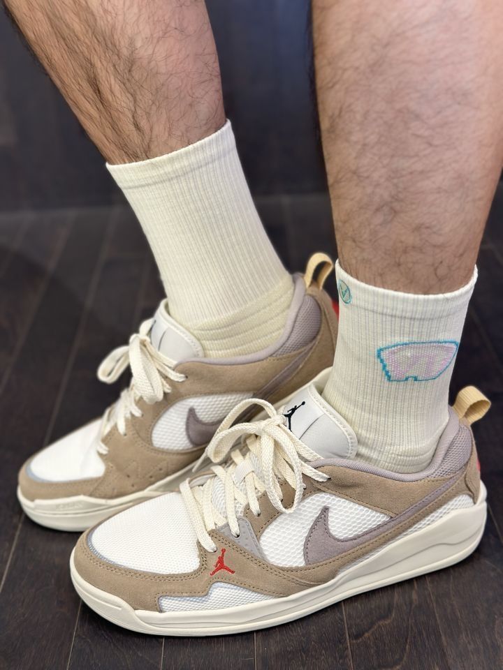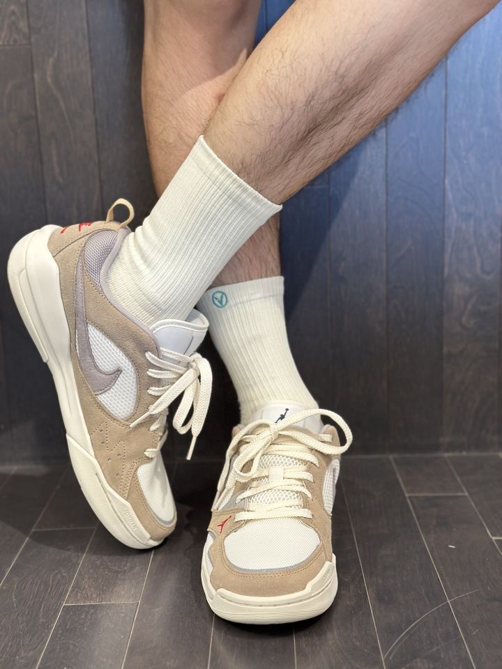 它是复古篮球文化与现代舒适主义的跨界玩家,以Jordan家族的经典基因,为潮流达人与篮球爱好者打造出一双“鱼与熊掌可兼得”的宝藏鞋款。 外观与穿搭:复古氛围感的穿搭作弊器 ❤️💜 从外观来看,它走的是复古低帮路线,棕色麂皮与白色网面、灰色Swoosh的碰撞,复古调性拉满,又因低帮设计多了几分随性。不管是搭配图中的复古风长袜走街头潮人路线,还是配工装裤走美式复古风,甚至搭条简约运动短裤走球场实战风...