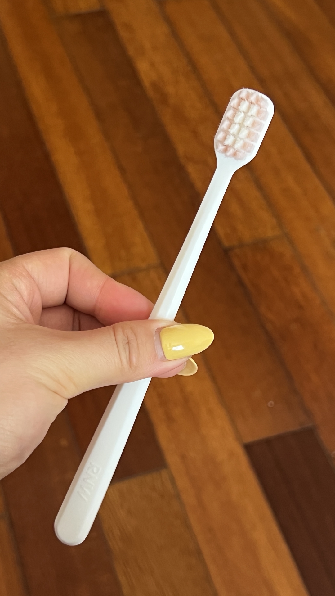 发现刷头软乎乎的,刷牙时牙龈不适感少很多,目前用了快两周没再出血~不过它的手柄是简约风,我这种爱丢三落四的,总担心随手放会找不到🤣 想问问大家,这种软毛刷头清洁力能维持多久? 还有没有其他适合敏龈的牙刷推荐呀~
