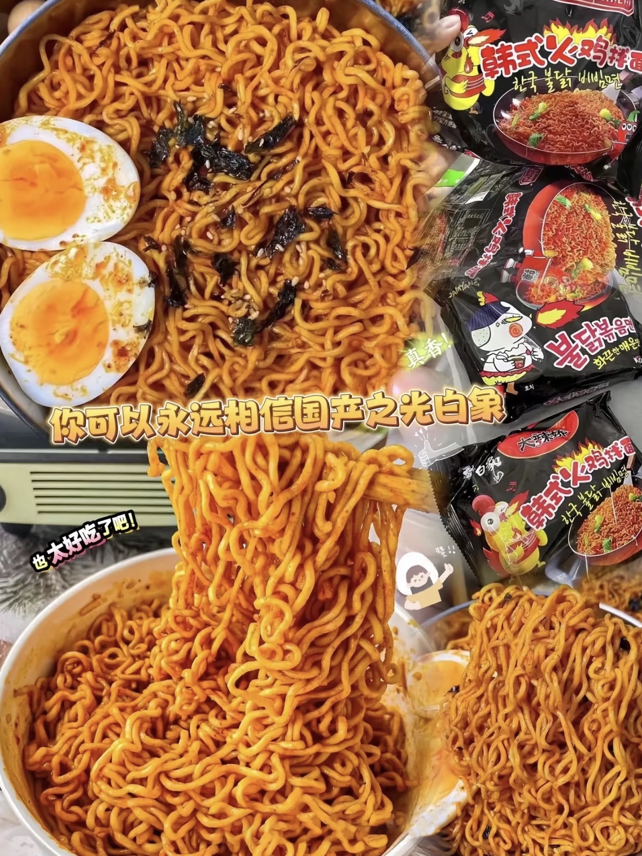 谁懂啊!加班到深夜饿到前胸贴后背,全靠这碗火鸡面救我🐔面饼丢沸水里煮几分钟,Q弹得很~酱料甜辣挂的,裹满面条,每口都刺激味蕾!不过辣度对吃不了辣的宝有点挑战😅 独居打工人、熬夜学生党,深夜来一碗,暖了胃也解了乏,香迷糊咯~
