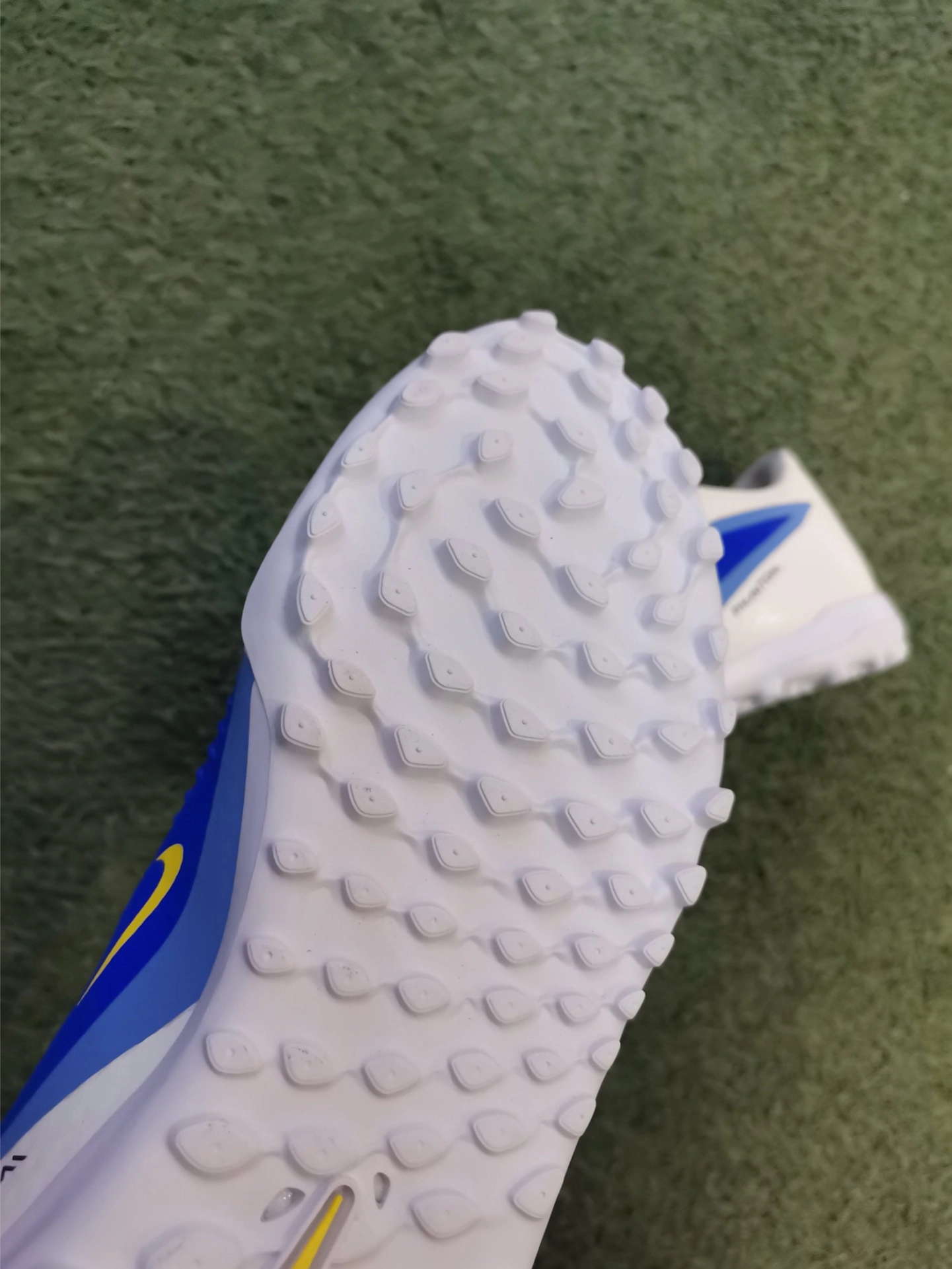 我平时爱踢踢足球放松,选这双鞋是看中它中端款价格友好~外观蓝白黄搭配很清爽,颜值耐打👍。TF碎钉设计,不管是养生局还是路人局都能穿,在室外水泥地、人造草地这些场地也适配。不过要是追求顶级款性能,它可能差那么点,但日常踢球完全够使,分享给爱踢球的朋友们🥳~