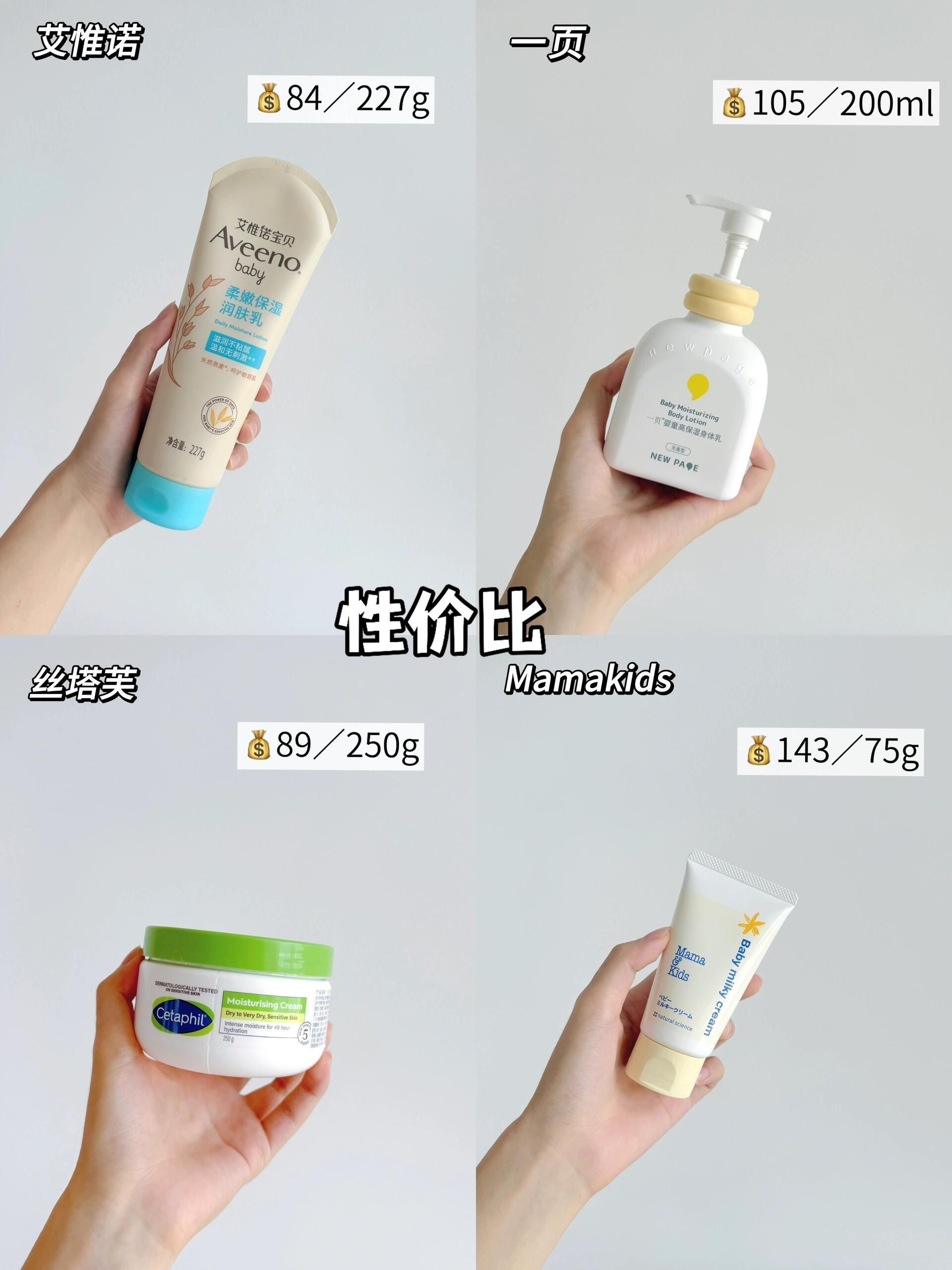 本篇笔记关联了Aveeno/艾惟诺 婴儿面霜每日倍护润肤乳 保湿滋润补水柔嫩婴幼儿童保湿补水无香型补水保湿全身 227g、一页 婴童洗发沐浴露二合一无泪无香泡泡有香 无香型、Cetaphil/丝塔芙 大白罐舒润面霜 四维保湿修护肌肤敏感肌适用 250g新版等商品,为用户提供真实的使用体验和购买参考。