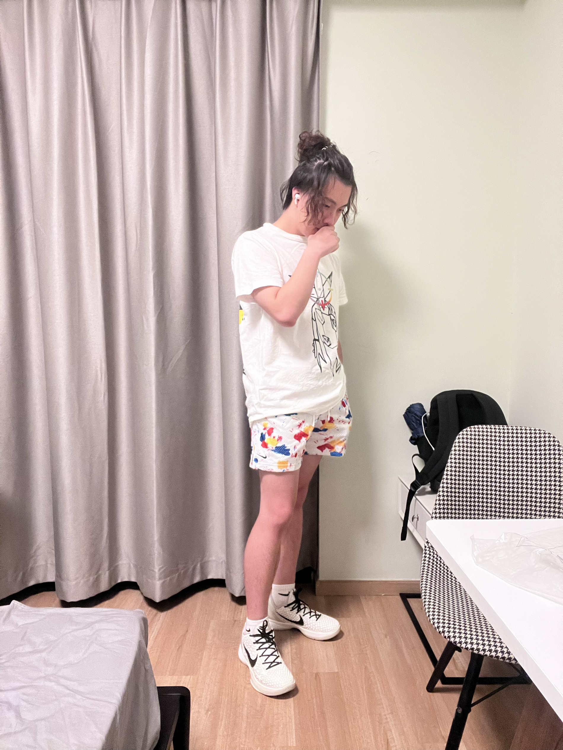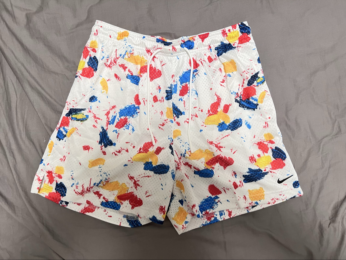 喜欢这条裤子很久了,外面类似泼墨炫彩的设计比较清新,面料也是很透气的,长度也很合适,较为宽松的美式短裤了,希望耐克多出一些这种类型的吧