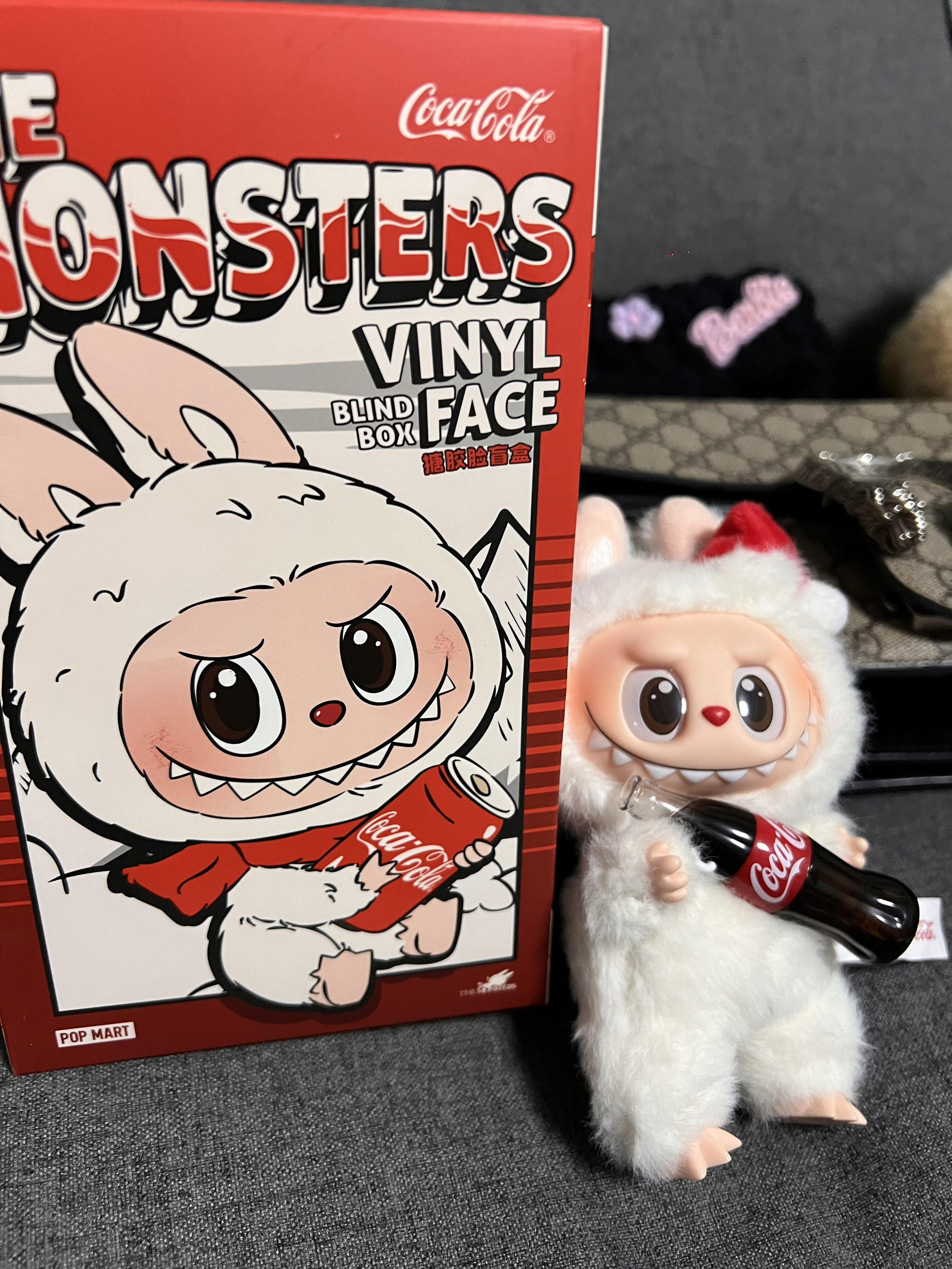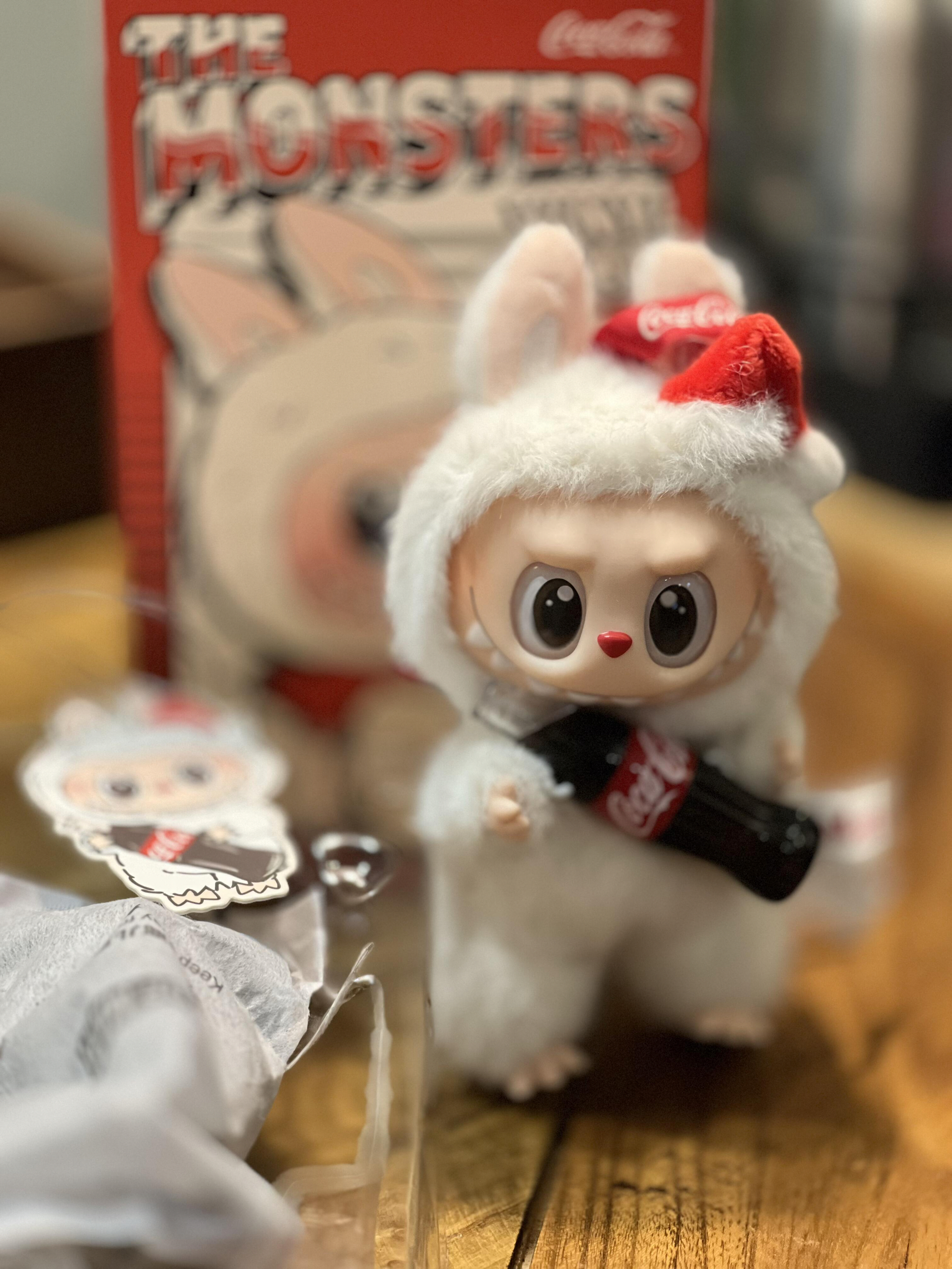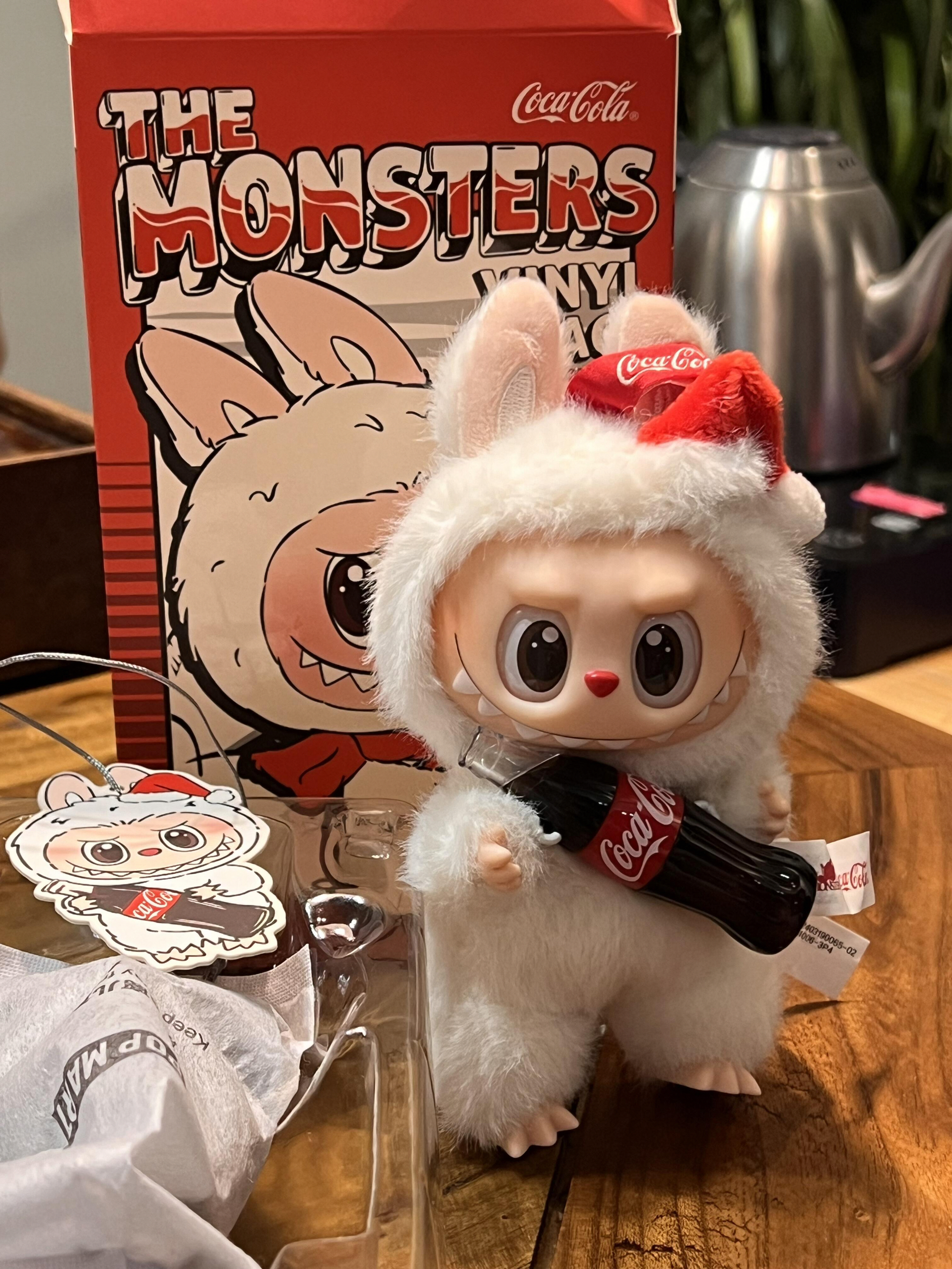 是泡泡玛特THE MONSTERS与可口可乐联名的盲盒,主角是白色毛绒Zimomo,手持可乐瓶,可爱潮酷,属潮流玩具,适合收藏或送礼。