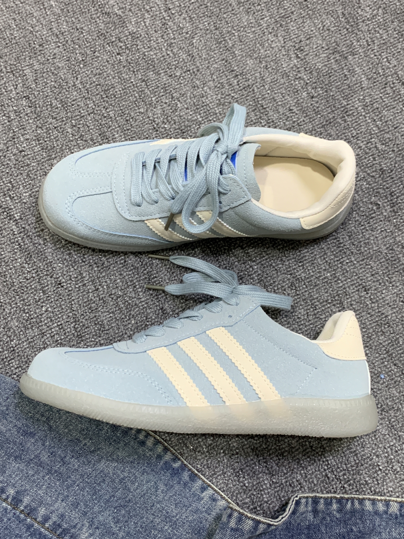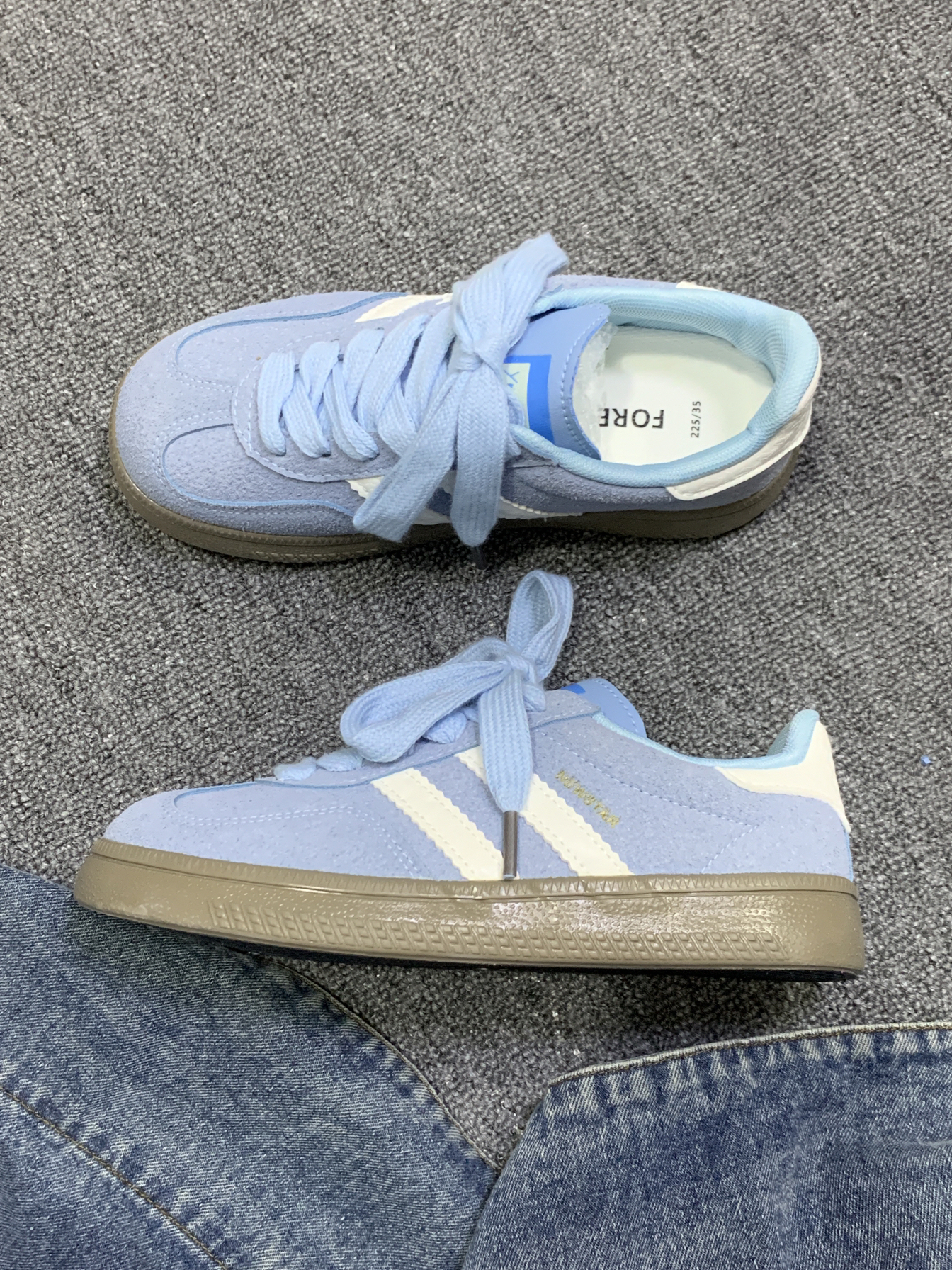 摆脱沉闷的黑白色来试试奶呼呼的蓝色叭~ kapa真的别太会配色咯 鞋子看着还蛮秀气的 鞋店有一定的厚度 穿起来不硬✨ 脚感蛮不错的 风格也还挺适合学生党穿 新学期总得为自己准备一双新鞋子8️⃣