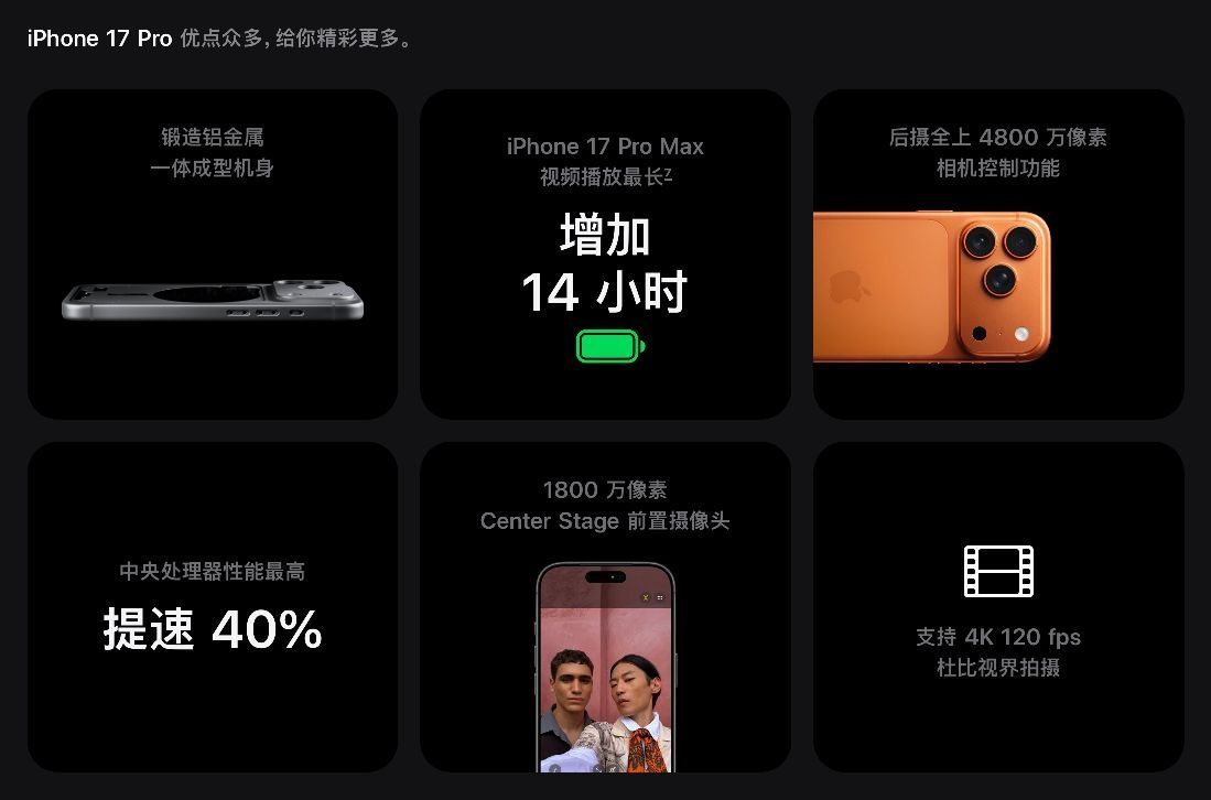 本篇笔记关联了Apple/苹果 iPhone17 Pro 5G 手机 航空级铝合金材质 全新散热系统 7层抗反射涂层 4800万像素后摄全覆盖 全网通 双卡双待 视网膜屏 星宇橙色等商品,为用户提供真实的使用体验和购买参考。