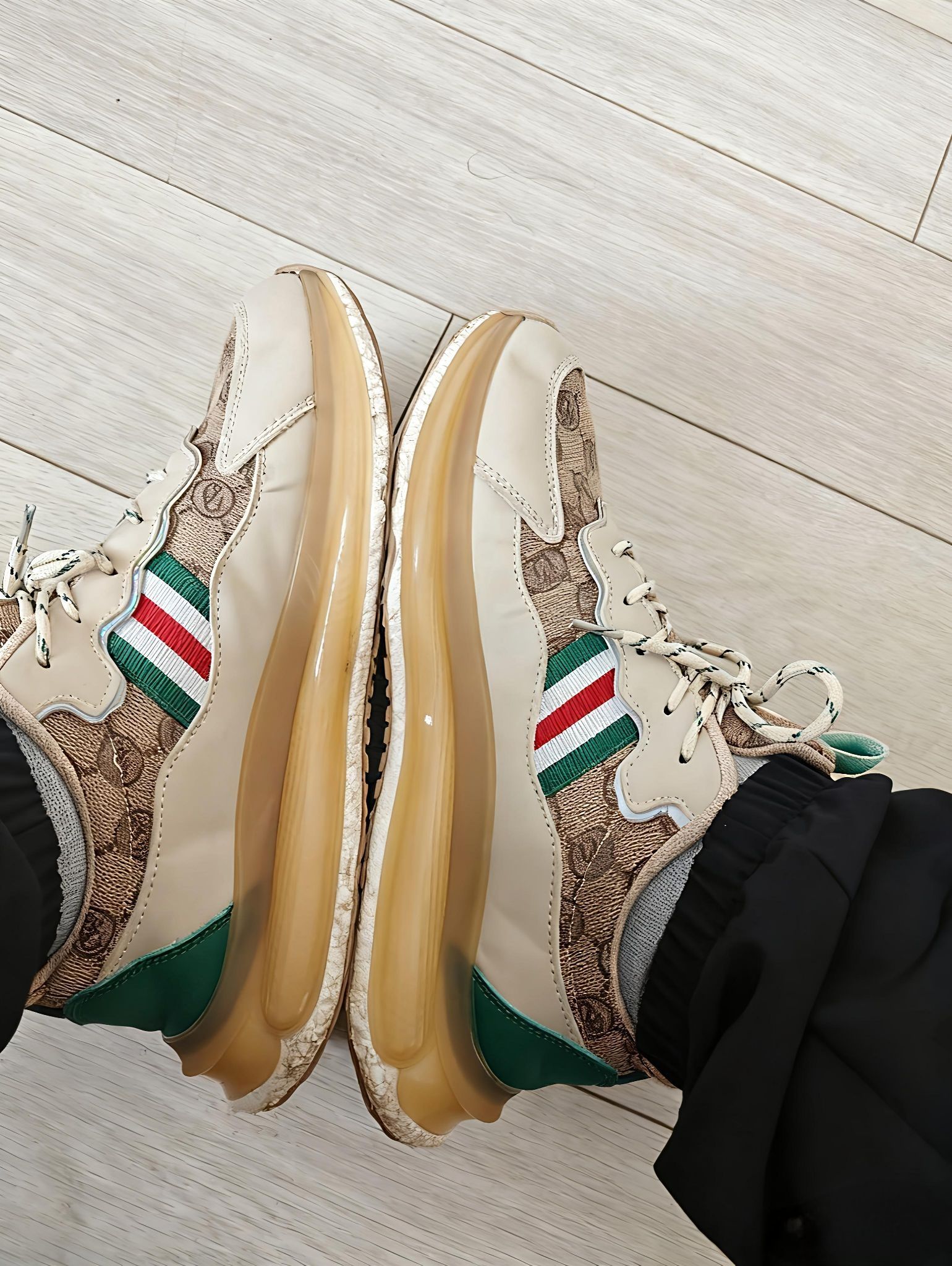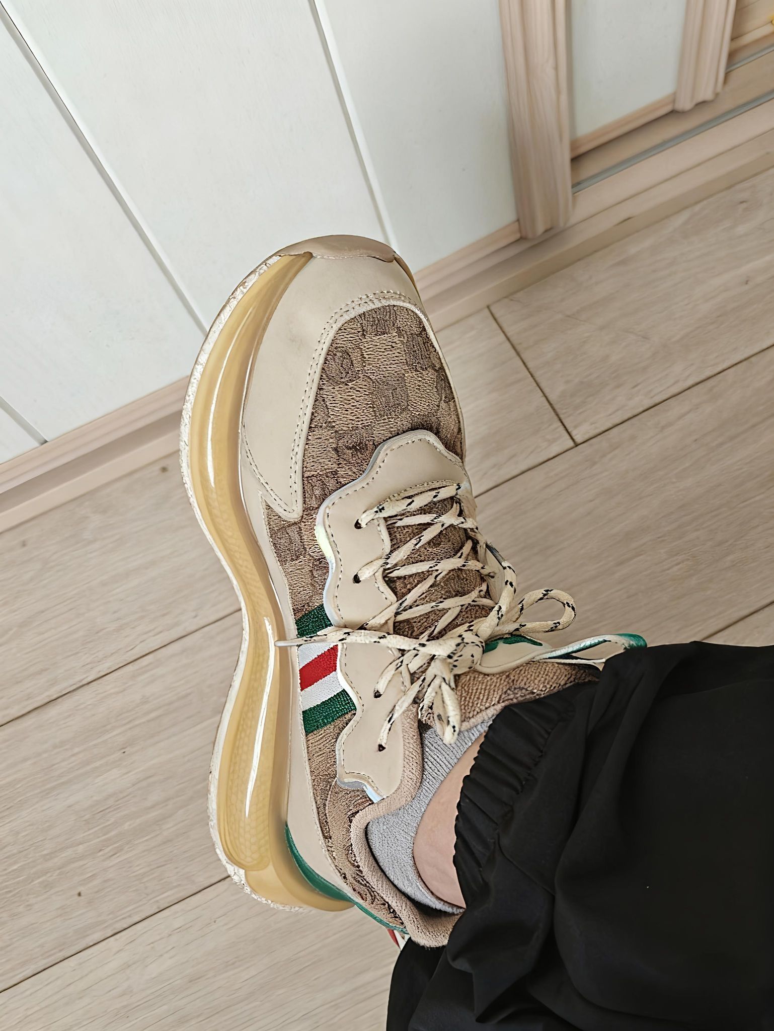 刚入手一双百元出头的鞋子,迫不及待想和大家分享上脚体验! 先夸夸它的颜值,真的完全长在审美上。经典品牌风图案打底,红、绿、白条纹点缀得恰到好处,复古感和时尚感拉满。上脚后瞬间提升整体造型的格调,不管是配休闲运动裤还是随性牛仔裤,都能轻松穿出不同风格,出门回头率超高,连朋友见了都忍不住夸好看。单看一百多的价格,能有这样的设计和质感,性价比绝对没话说。 不过它的缺点也比较明显...