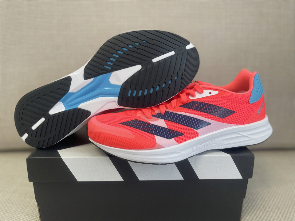 鞋子型号: adidas Adizero RC 4 橙紫 货号:H01120 👟外观:鞋子基本由橙色透气网布覆盖,外则则是三条深蓝色的阿迪三杠印花,鞋子后跟是浅蓝色的点缀并在旁边印着ADIZERO RC4的标。 鞋子底部有一层黑色防滑橡胶贴片,中间有蓝色的tpu抗扭板,白色部分则是EVA缓震部分。 整体看鞋子是青春活力的运动风格。 上脚: 鞋码:尺码合适,鞋子修长,...