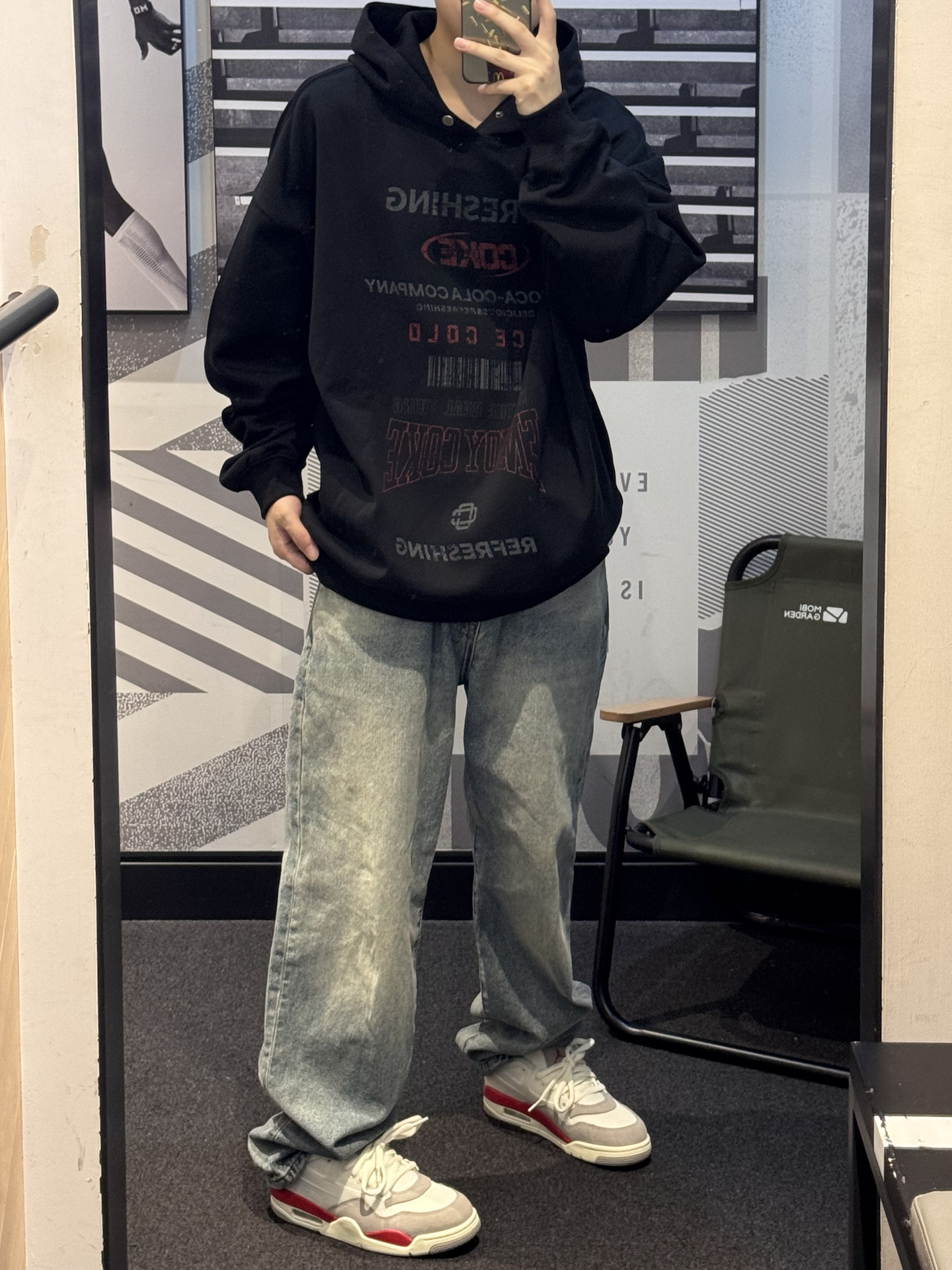 谁懂这件 #Coke 连帽卫衣的含金量🥺 黑色很基础搭配印花logo凸显美式少年感~ 纯棉重磅面料 亲肤柔软单穿也很舒服 宽松版型完全不挑身材 怎么穿都好看😉 上身也贼拉显瘦 搭配牛仔裤➕aj4rm 轻松拿捏入秋少年感穿搭🥤 #把可乐穿身上 #一件单品横跨夏秋 #预热一下秋冬穿搭 #一脚蹬进秋天 #早八卫衣懒人公式