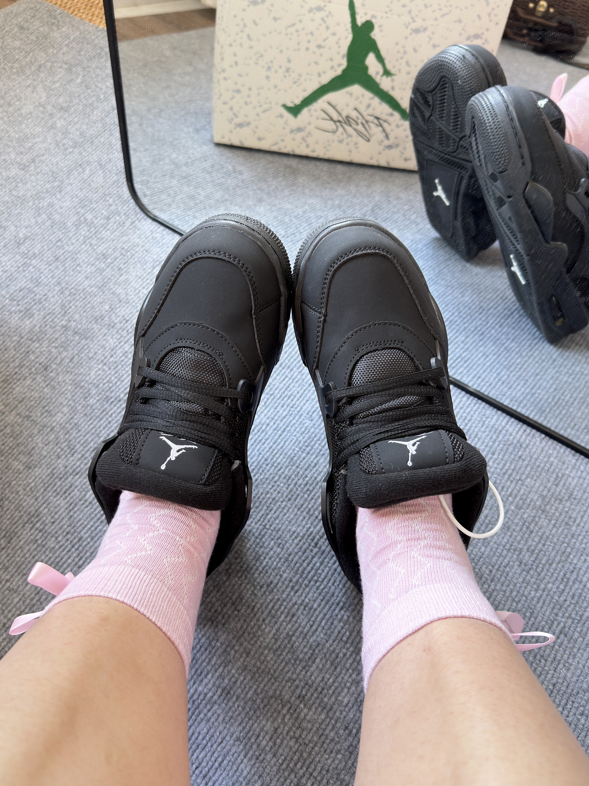 【黑色AJ4rm搭配粉色蝴蝶结袜子🎀又甜又酷!】,由用户 今天超甜鸭~ 分享,来自山东。这是一篇来自识货社区的真实用户分享笔记。