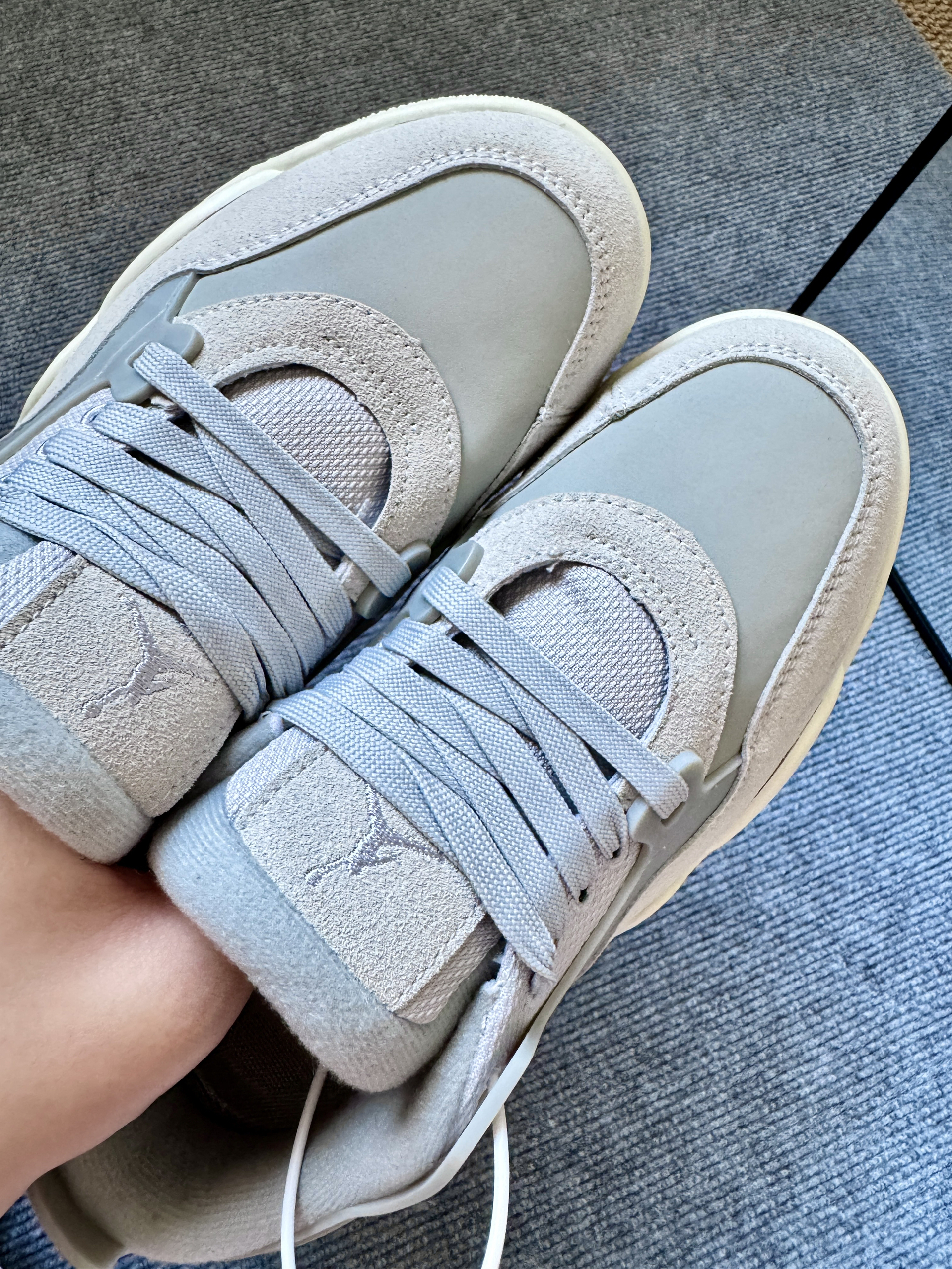啊啊啊~ 这双AJ4RM新配色太清新了 冷灰色的配色,干净又清爽 灰色系,百搭没错了 有一说一,这双鞋子我太需要了!