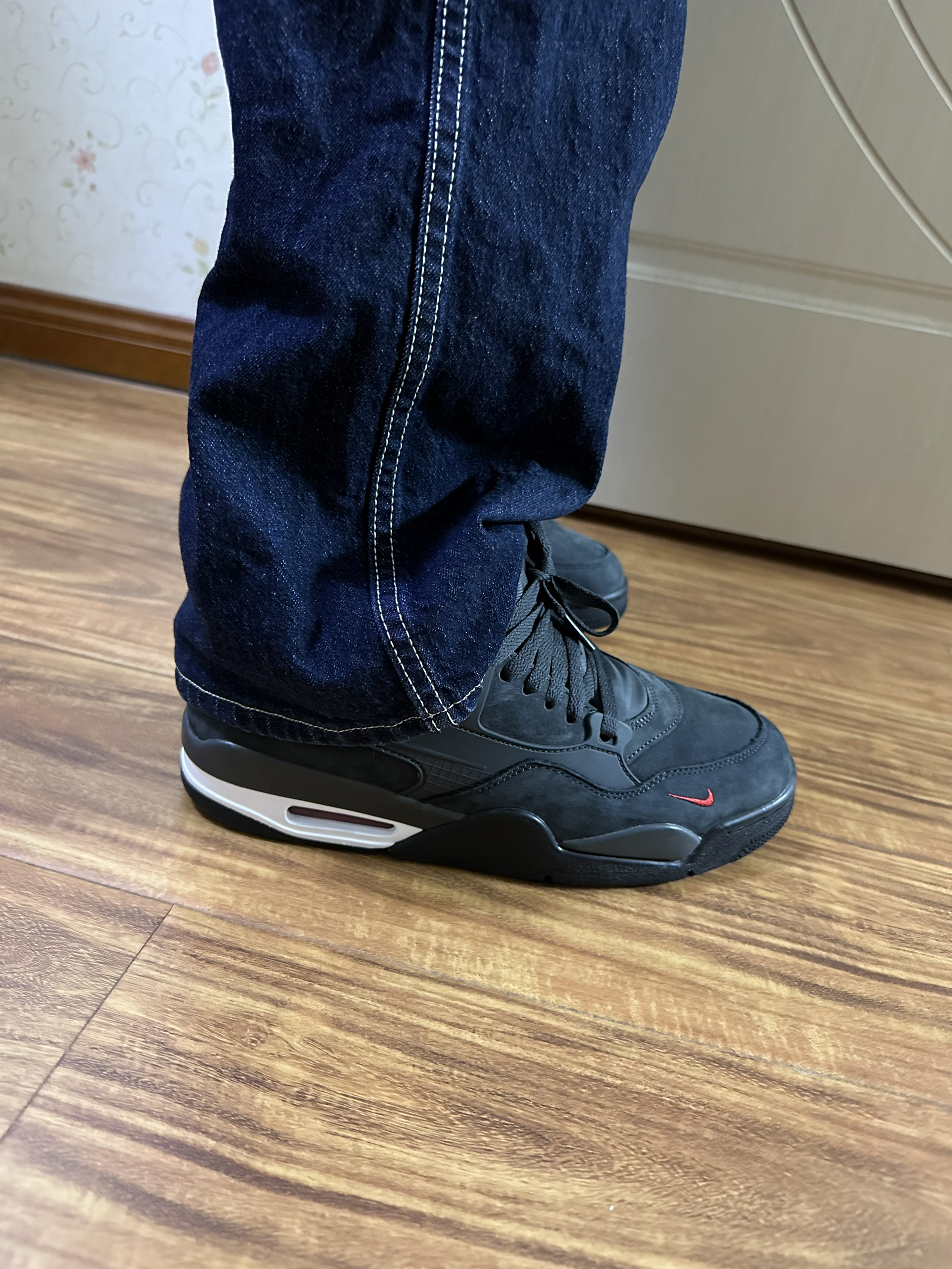 这双aj4rm最近挺火的 我也是入手了一双 从外观上来看可以说是aj4的低帮版本 鞋型基本一致 但是鞋后跟的bike就很独特 多了一些新颖的感觉 低帮的aj4相比较于高帮 我个人觉得没有那么笨重了 搭配的话依旧很好搭配 鞋面的材质和质感依旧很好 而且价格也比aj4高帮要实惠的多 你会选择这双aj4rm吗