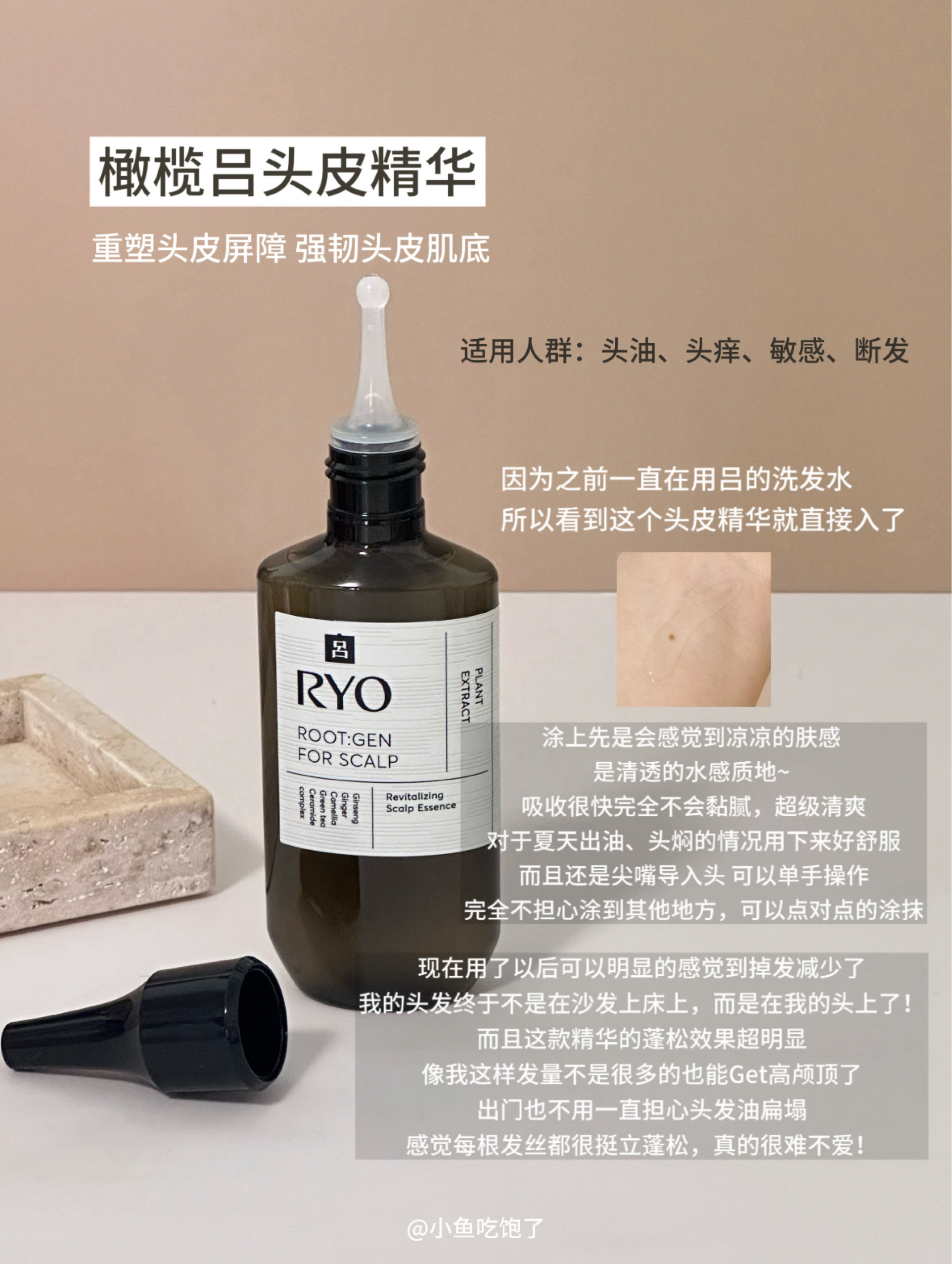 这半年来熬夜再加上平时睡眠也不规律 每次清理下水道都发现有一堆头发 头皮环境再不呵护!感觉真的要变秃头宝贝了 受够啦!我要夺回属于我的每一根头发 - 🇰🇷橄榄吕头皮精华 因为之前一直在用吕的洗发水,所以看到这个头皮精华就直接入了 涂上先是会感觉到凉凉的肤感 清透的水感质地~ 吸收很快完全不会黏腻,超级清爽,夏天用好舒服 而且还是尖嘴导入头 可以单手操作,完全不担心涂到其他地方,可以点对点的涂抹 现...