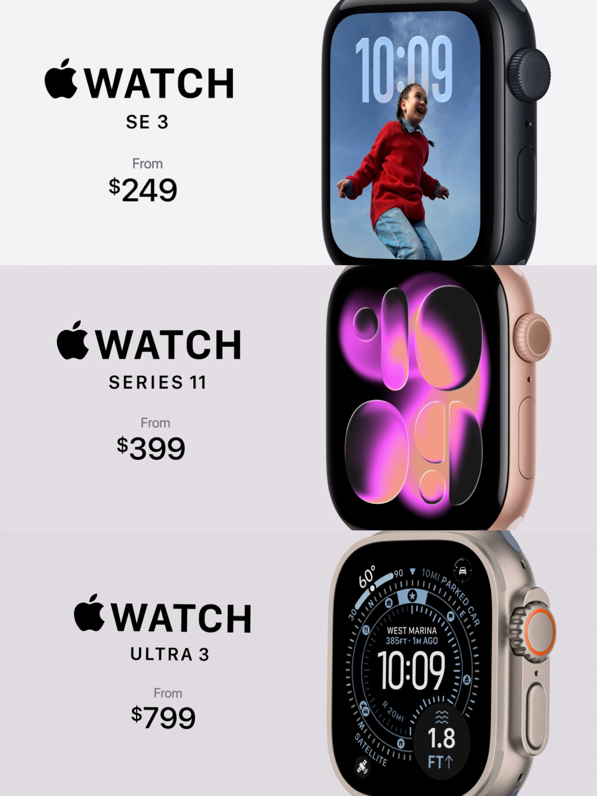 苹果发布会发布了Series11、Ultra3和SE3这三款手表 它们到底有什么区别呢?应该如何选择? Apple Watch Series 11: 能监测高血压趋势,对咱健康有个提醒 还有睡眠评分,能清楚知道自己睡眠咋样 屏幕亮度3000尼特,大太阳下也能看清 电量从0%到80%只需30分钟 续航24小时,基本能满足日常使用 还有实时消息翻译,尊滴好智能 💰:2999r起 Apple Wat...