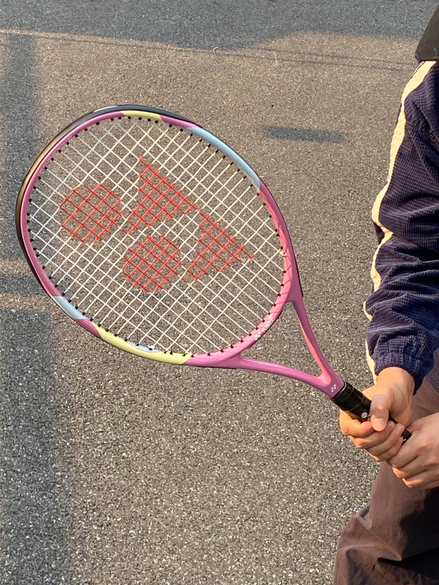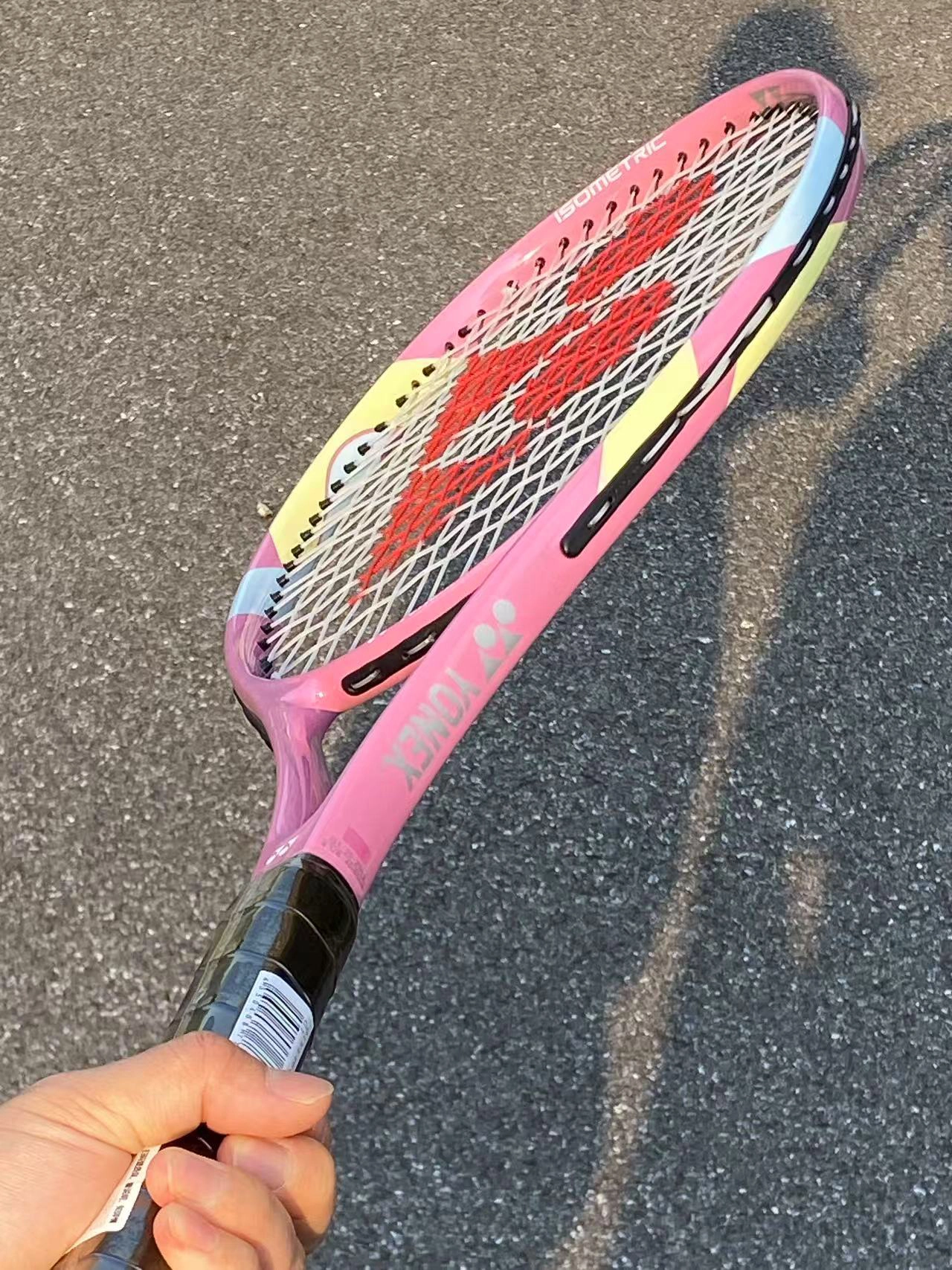我之前对网球一知半解,选这拍子纯粹是被颜值戳中~ 粉紫渐变配色好吸睛,拿在手上打眼得很。 打着打着发现它性能也在线! 碳铝合金材质,回弹和稳固性都不错,对我这种新手很友好,不会因为控制不好拍子影响体验。现在我每次去球场都超积极,打起来嘎嘎爽! 不过它重量对完全没运动基础的朋友,可能刚开始会觉得有点沉,但习惯后就还好啦~