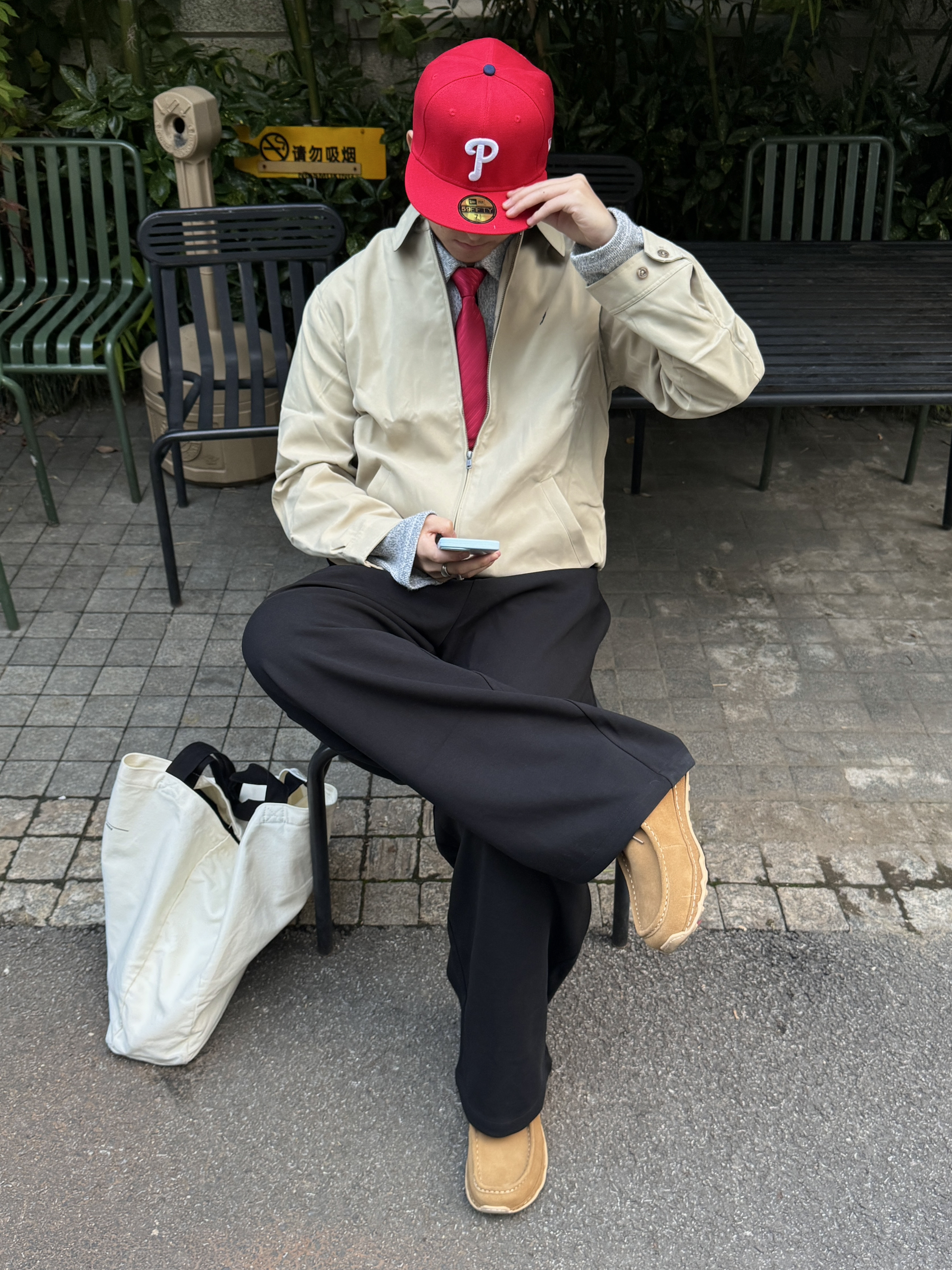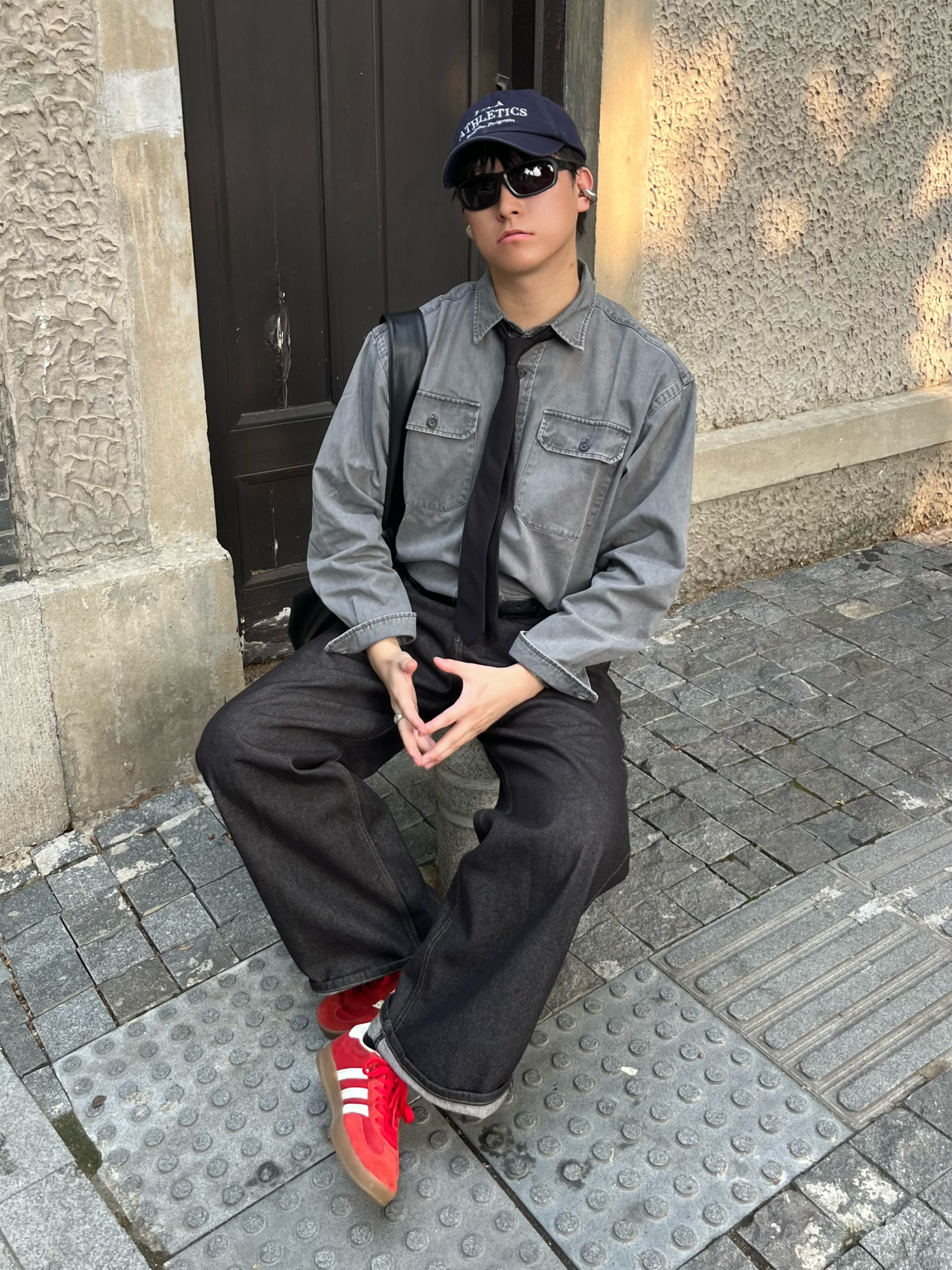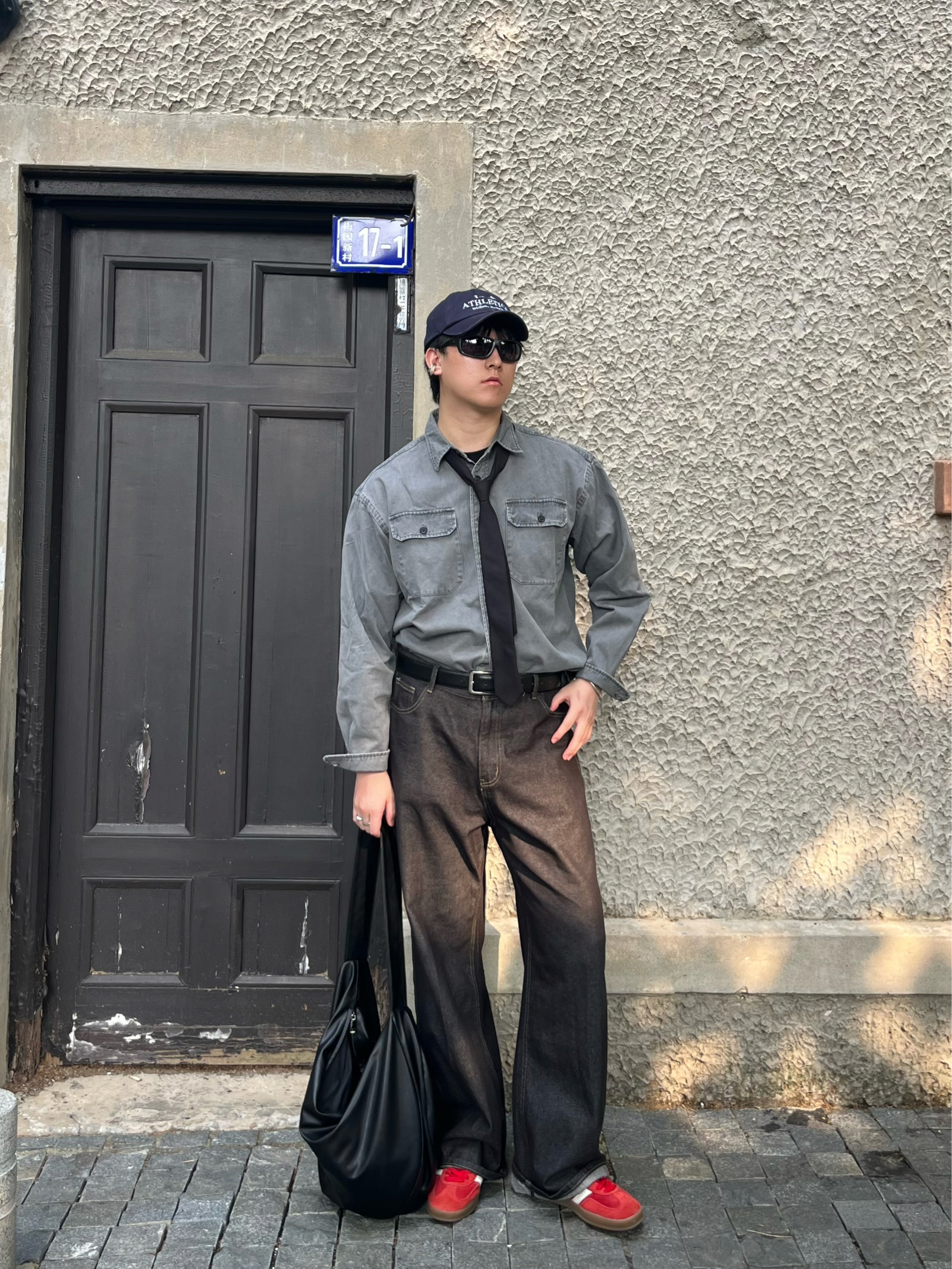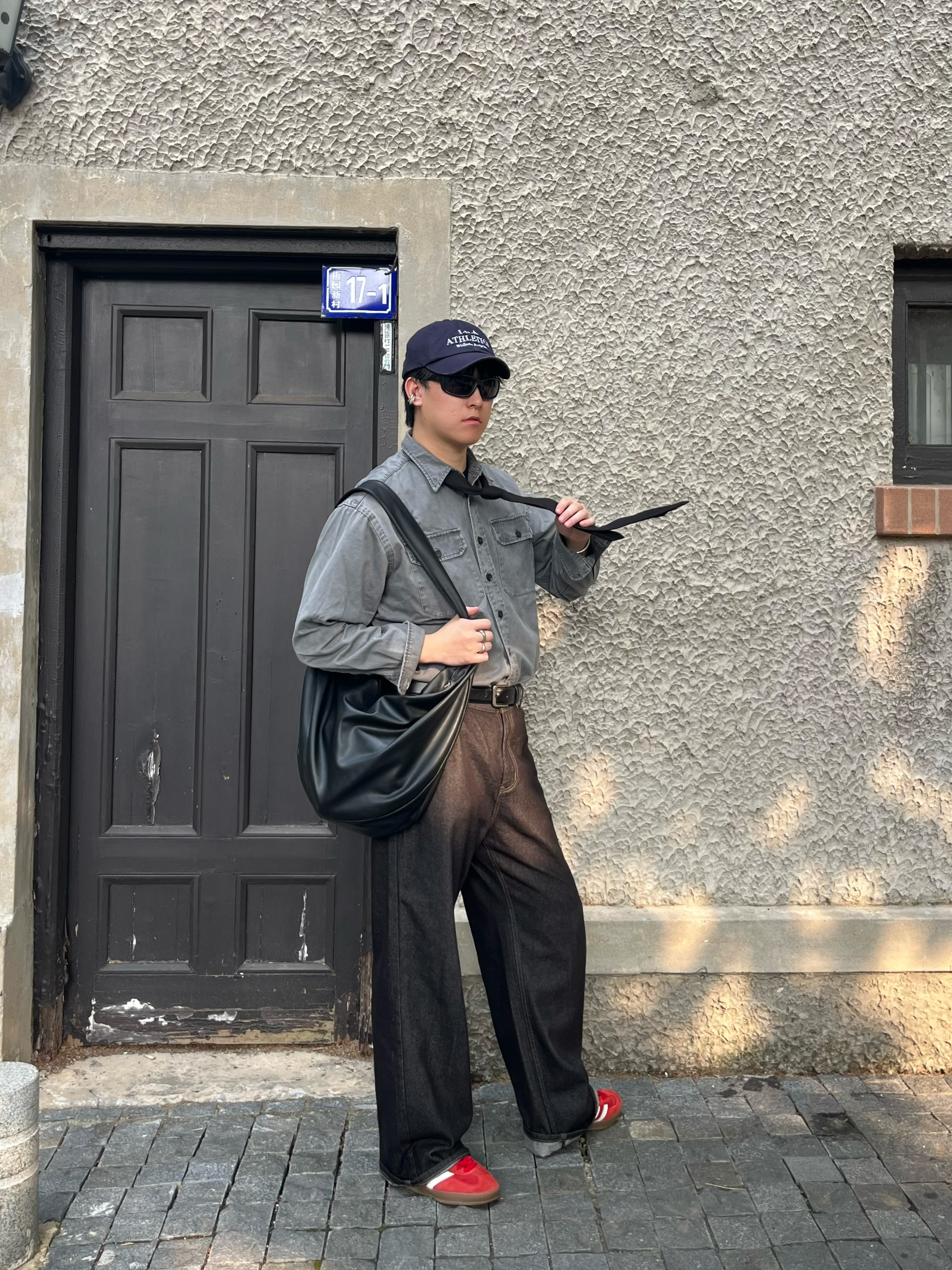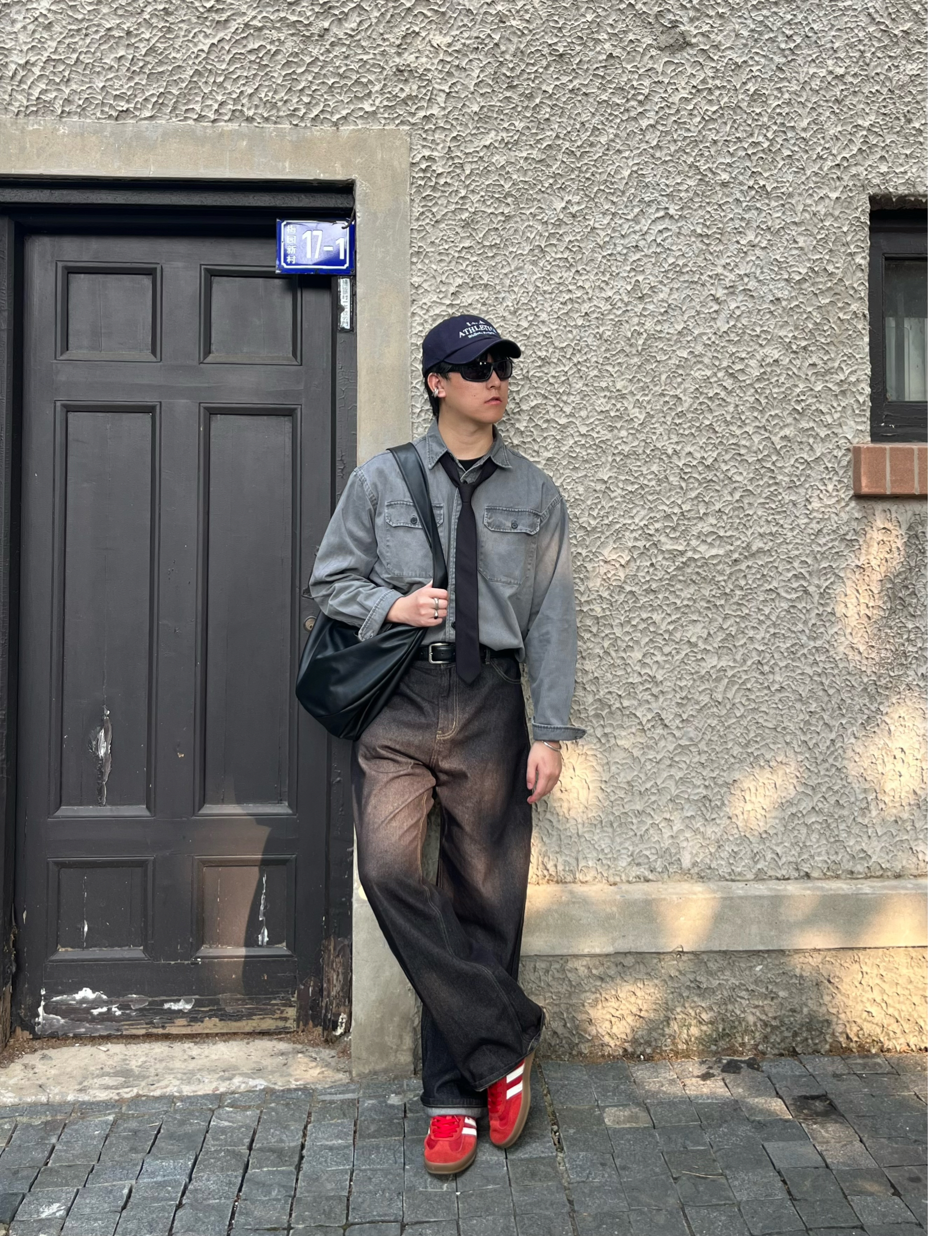最近太适合穿卫衣和衬衣了 又在梅村拍了一组照片 今日色系:灰红黑👋
