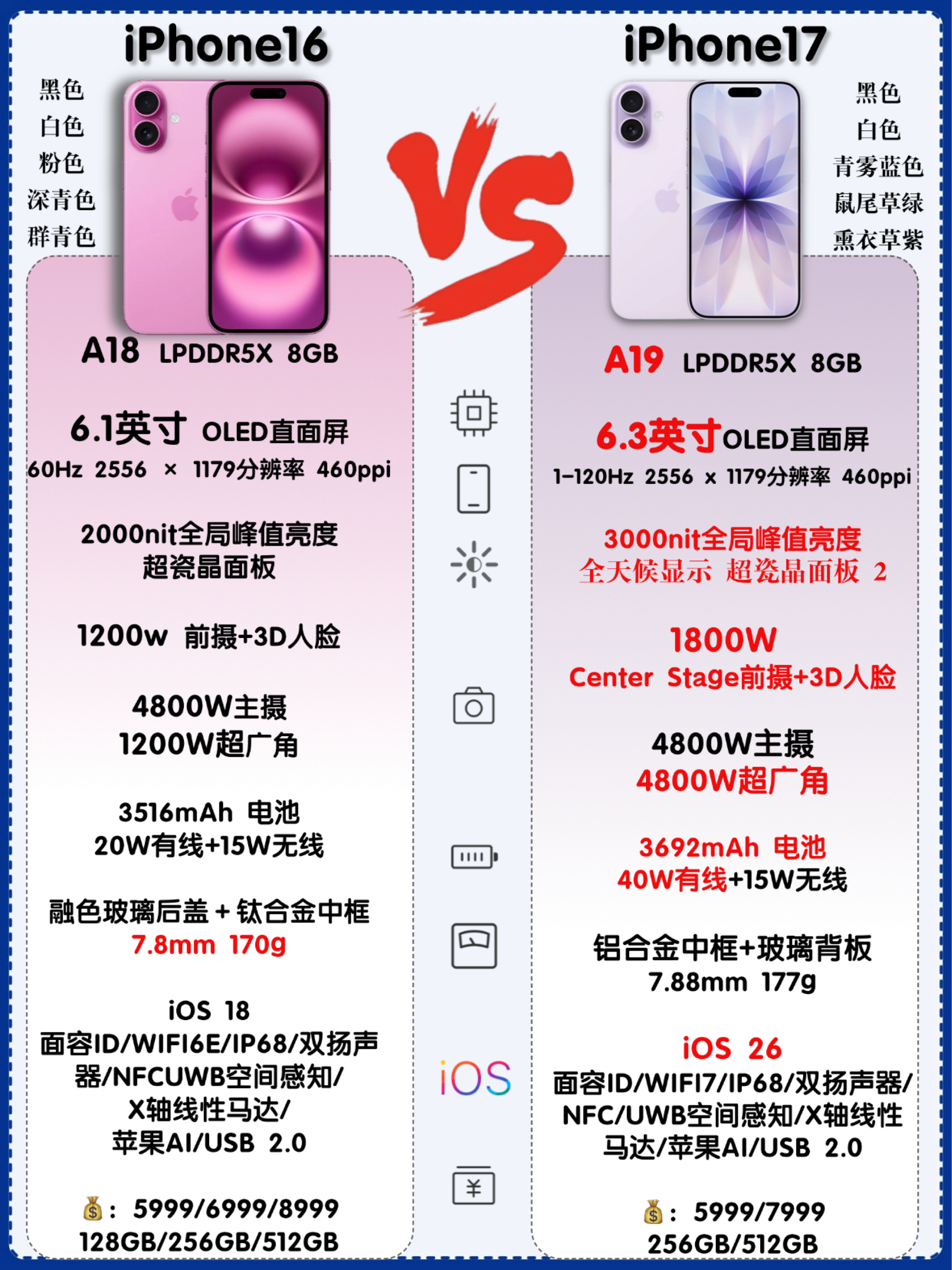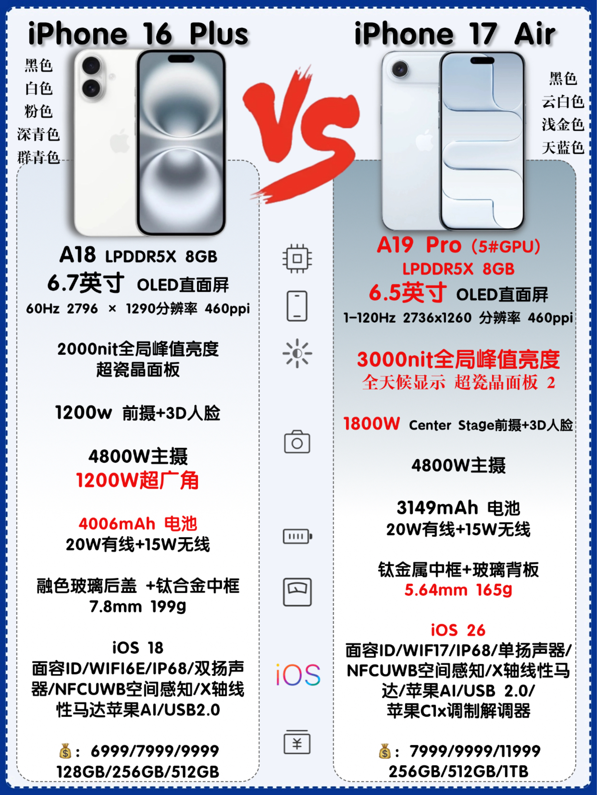 家人们,苹果发布会开完了,这次iPhone 17系列全系升级,还新增了iPhone Air,我来给大家分析分析怎么选才不亏! 这次最值得夸的就是iPhone 17标准版,起售价还是5999元,容量直接256GB起步,终于告别了128GB的小水管,再也不用担心内存不够用了。而且它还上了120Hz高刷屏,滑动起来那叫一个丝滑,游戏党、视频党狂喜!再加上A19芯片的加持,日常使用和打游戏都毫无压力,还能...