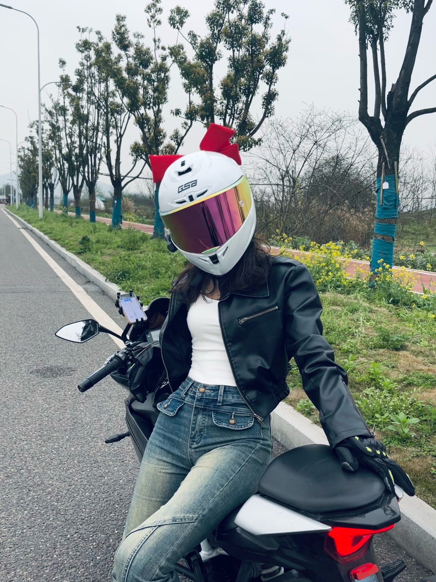 家人们谁懂啊!我新入的这个头盔尊嘟好绝😍! 珍珠白配色贼拉清新,自带的大蝴蝶结让我直接变身机车甜妹~ 它还有蓝牙耳机槽,听歌通话都方便! 不过单镜片有时候换场景得适应下,但性价比这块我觉得ok👍,通勤、跑山都能戴,爱骑车的宝子可以冲!