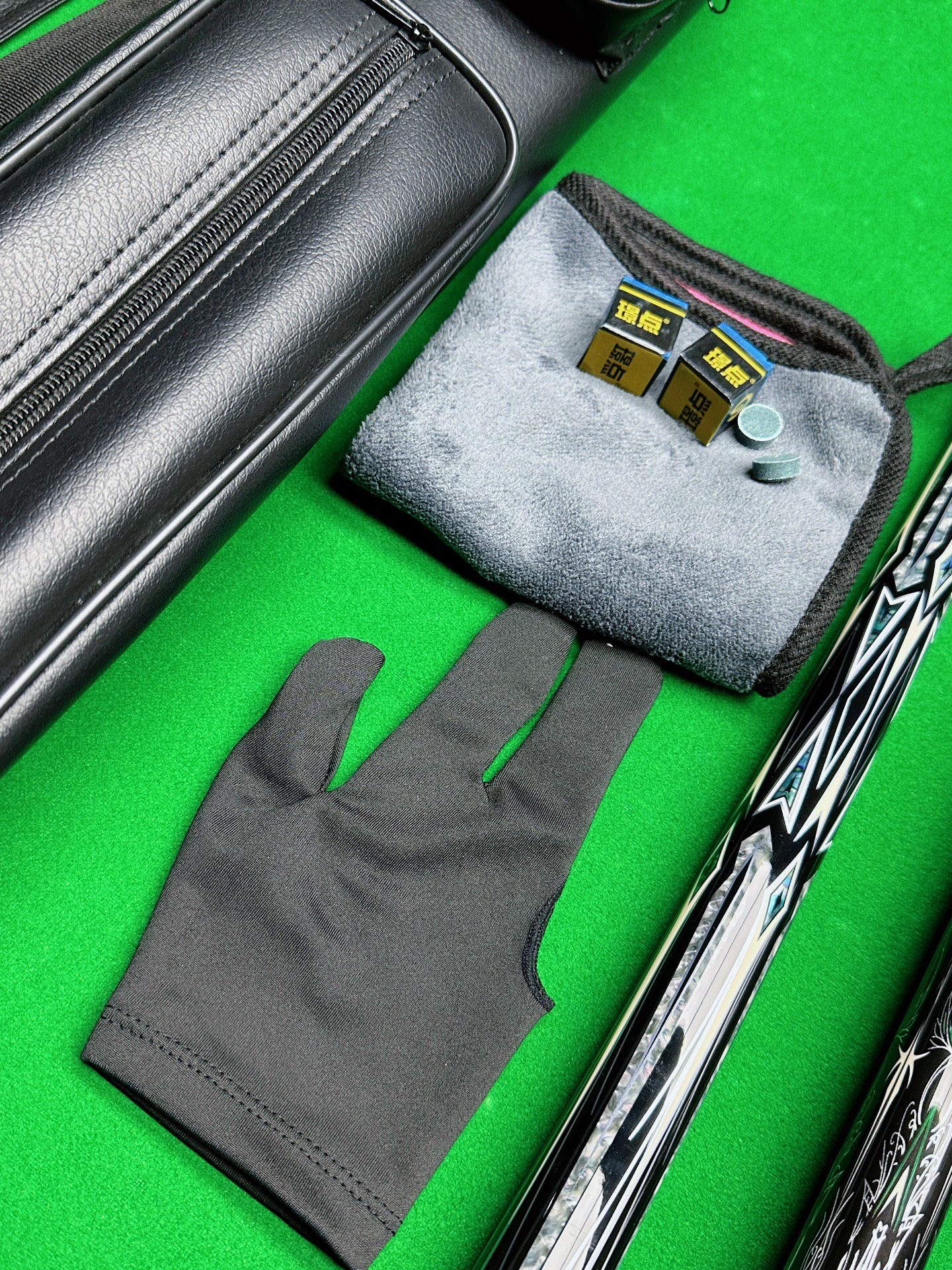 周末和小伙伴约台球放松,我带上新入的环球绿魔球杆,实木雕贴图案尊嘟好精致✨ 枫木材质拿手里很有分量,击球那叫一个丝滑~ 还送巧粉、杆桶这些小物件,用着方便! 不过球杆保养得花点心思,不然怕影响手感🥹