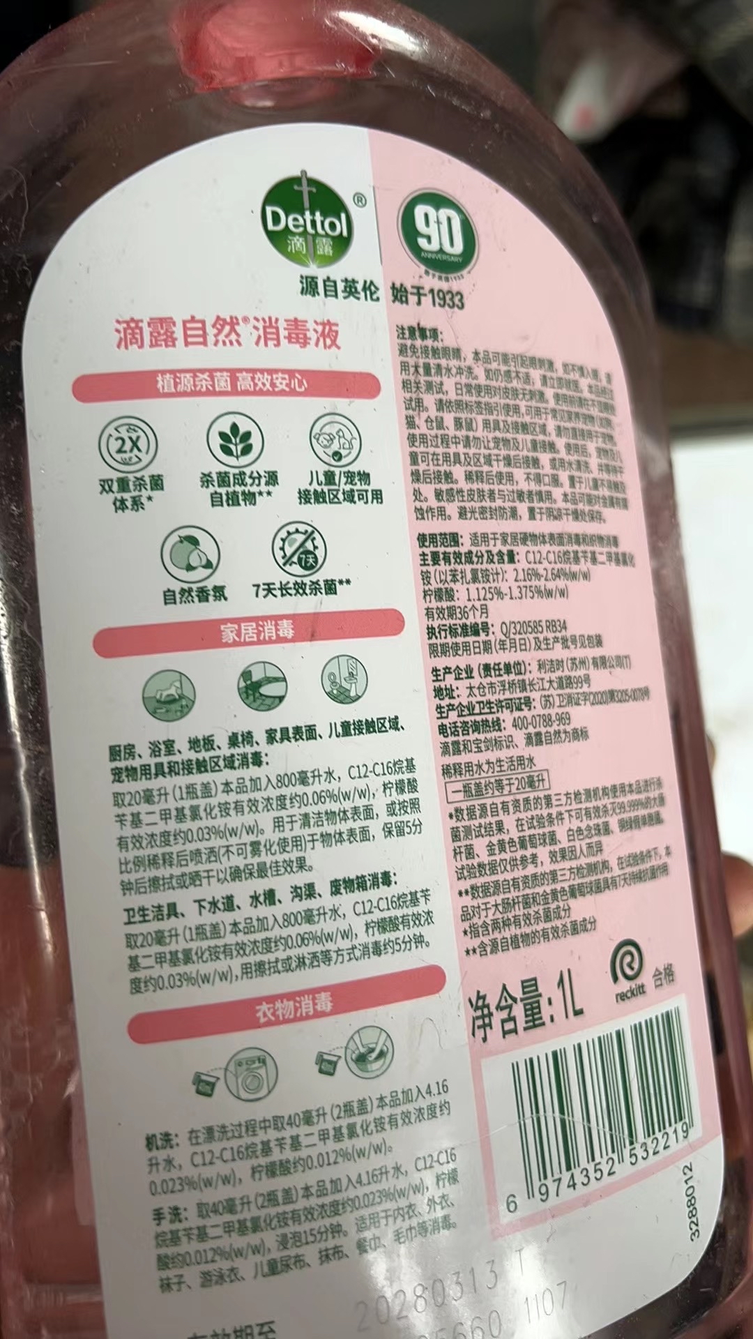 本篇笔记关联了Dettol/滴露 杀菌去异味除螨除菌 白桃与葡萄柚香 自然消毒液 瓶装 持久留香去味不刺激 1L等商品,为用户提供真实的使用体验和购买参考。