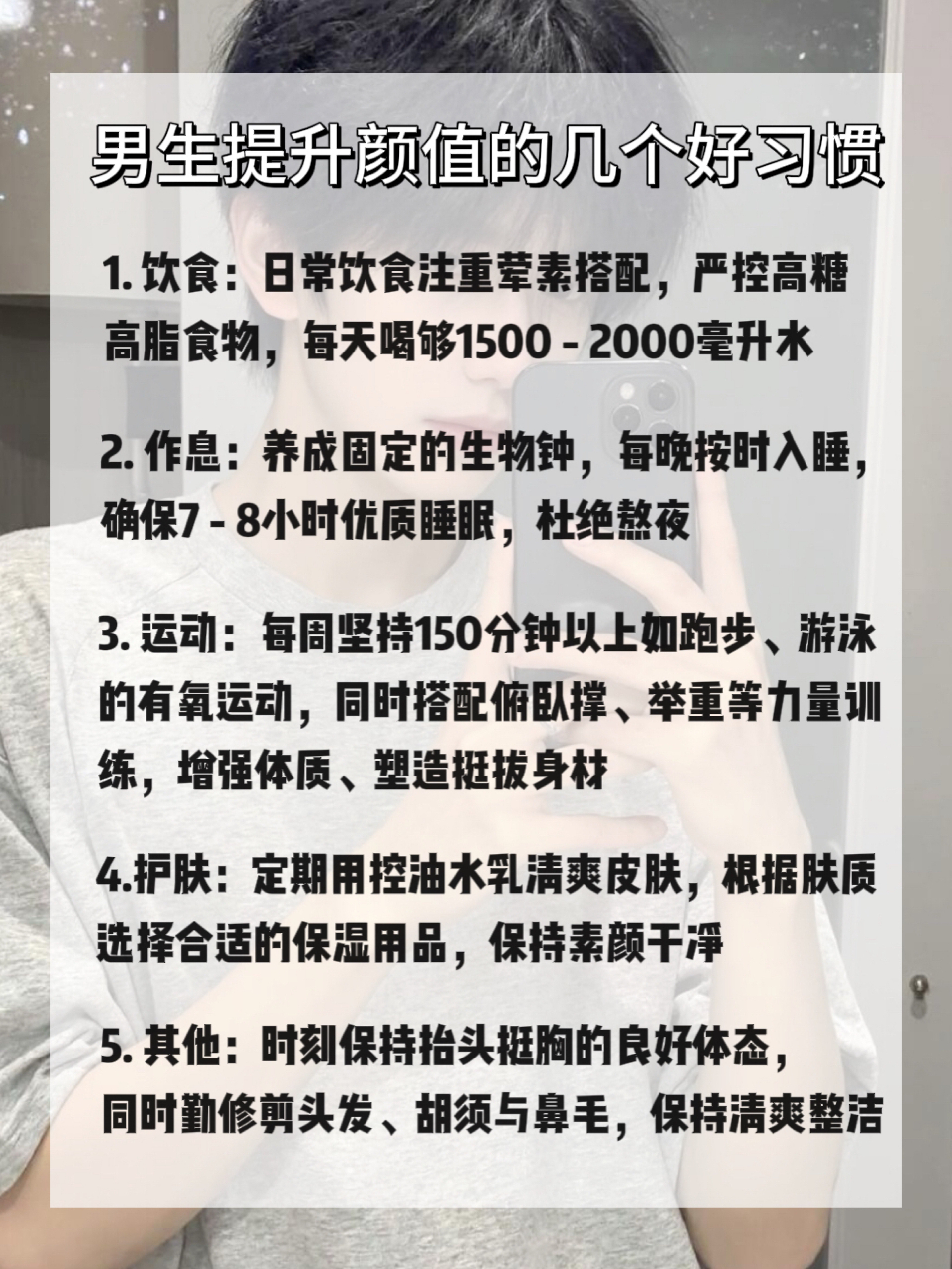 兄弟们,高考完别天天宅家打游戏啦! 这么长的假期,咱得整点有意义的事儿,等上了大学再搞就来不及咯 青春期的咱,脸上爱长痘、长闭口粉刺,要是还不注意形象可不行。跟着我这份攻略做,保证暑假结束,你直接变身大帅哥! 男生变帅能有多低成本?大学生 OOTD 穿搭秘籍奉上,还有清洁护肤的暑假逆袭计划,氛围感帅哥养成就在这个假期