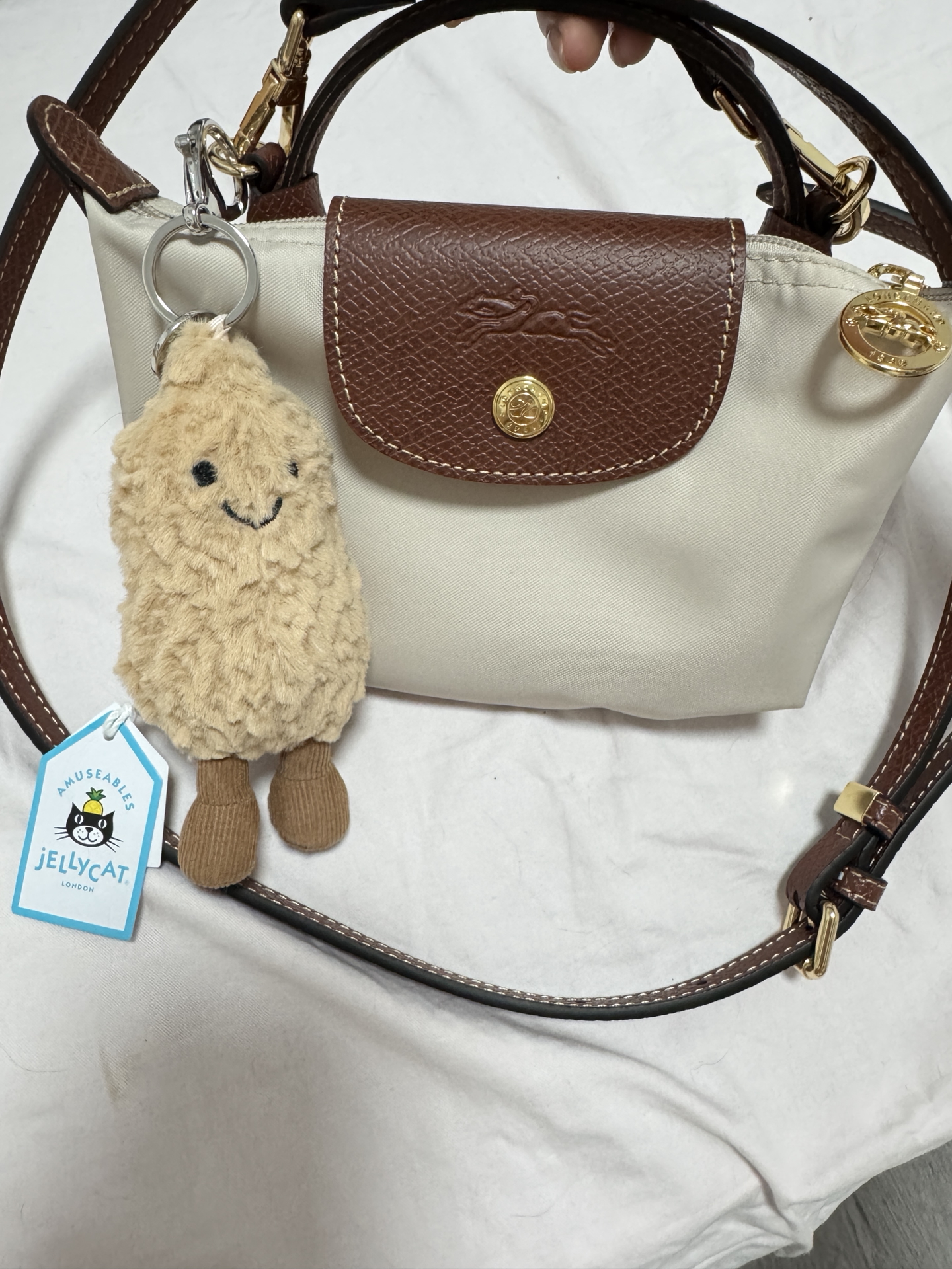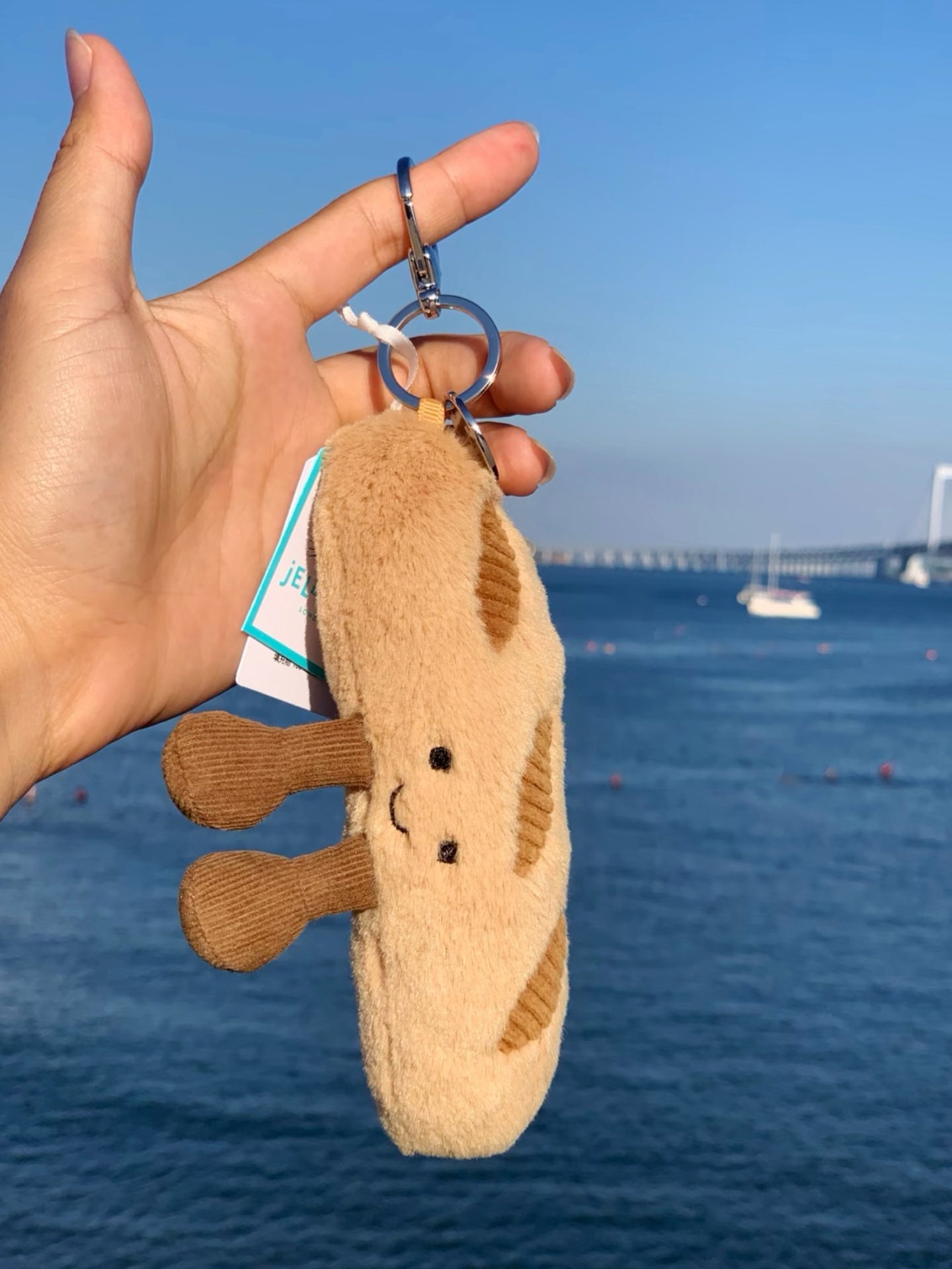 去海边玩带着jellycat挂件,阳光下它毛色好亮✨ 做工也精致,没多余线头,链子也结实~手掌大小挂包包或钥匙扣都好看,就是价格小贵🥺 不过喜欢的话也值得入呀~
