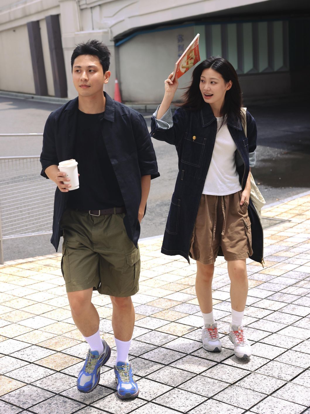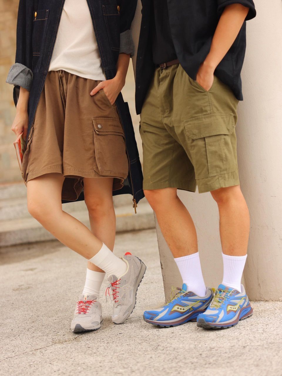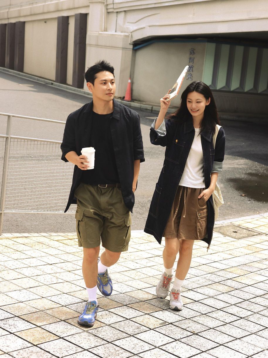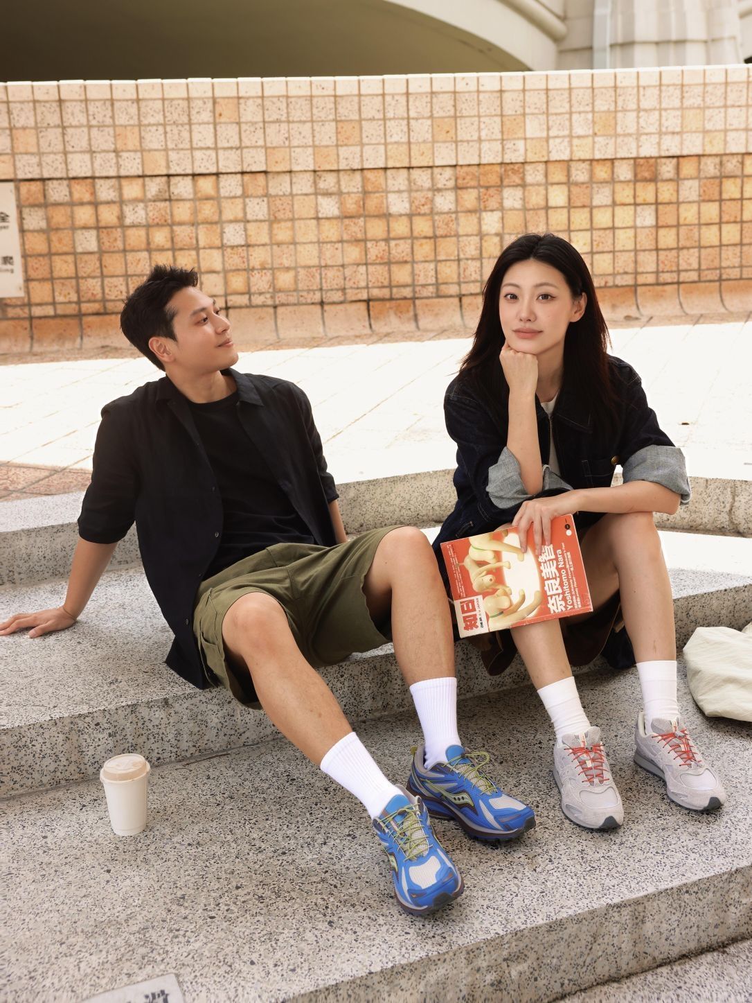日杂感ootd轻松拿捏 夏天搭配情侣装citywalk 鞋子是Saucony和niko and...联名款 Kinvara 4 RE和Trainer 80X 日出黎明的雾霾蓝 撞色的设计复古又吸晴 另一双灰色则是日落黄昏 打造出满满的日系复古感 脚感也超舒适 工装look出街 我们在街头随手拍出日杂感📸