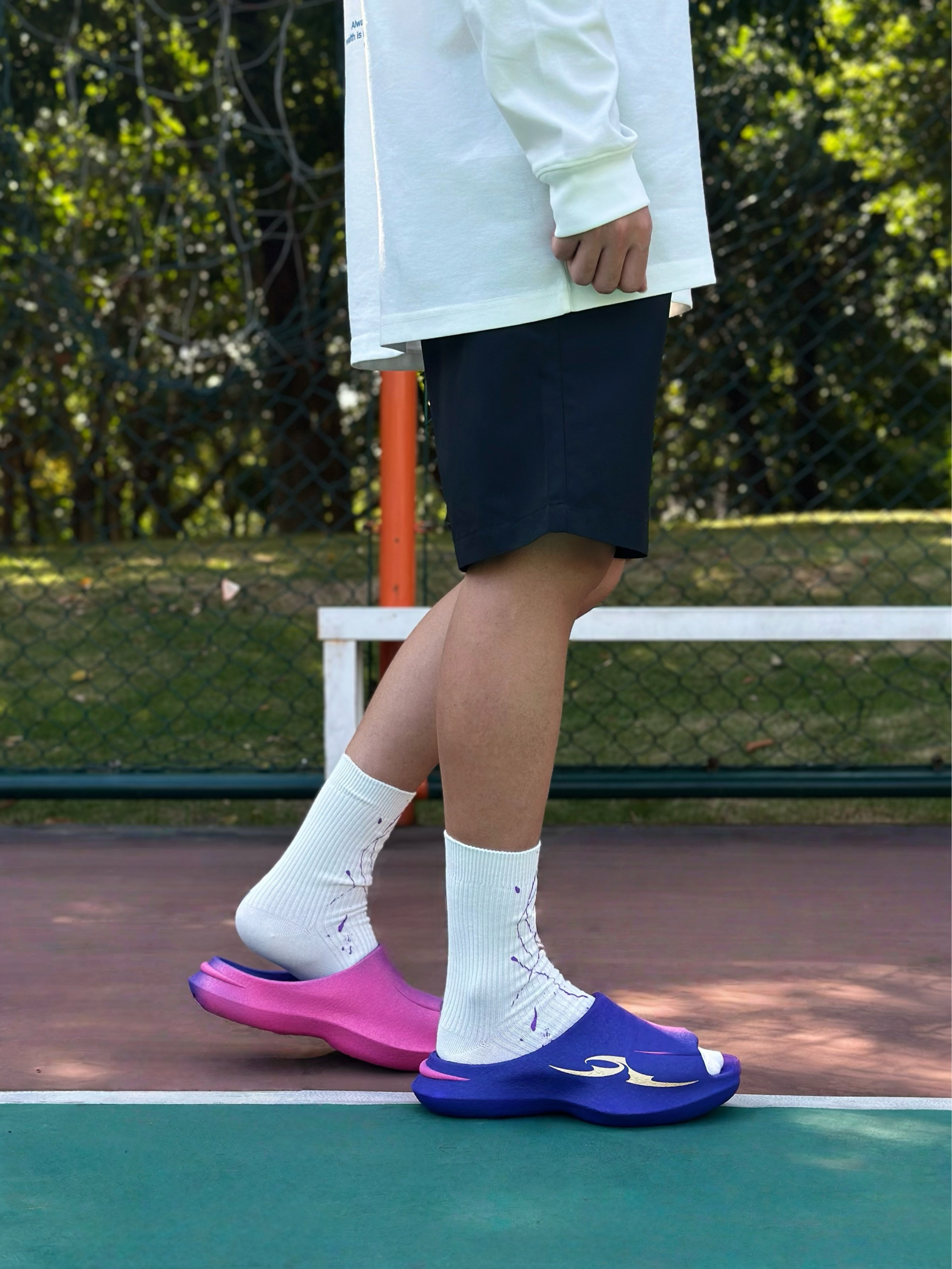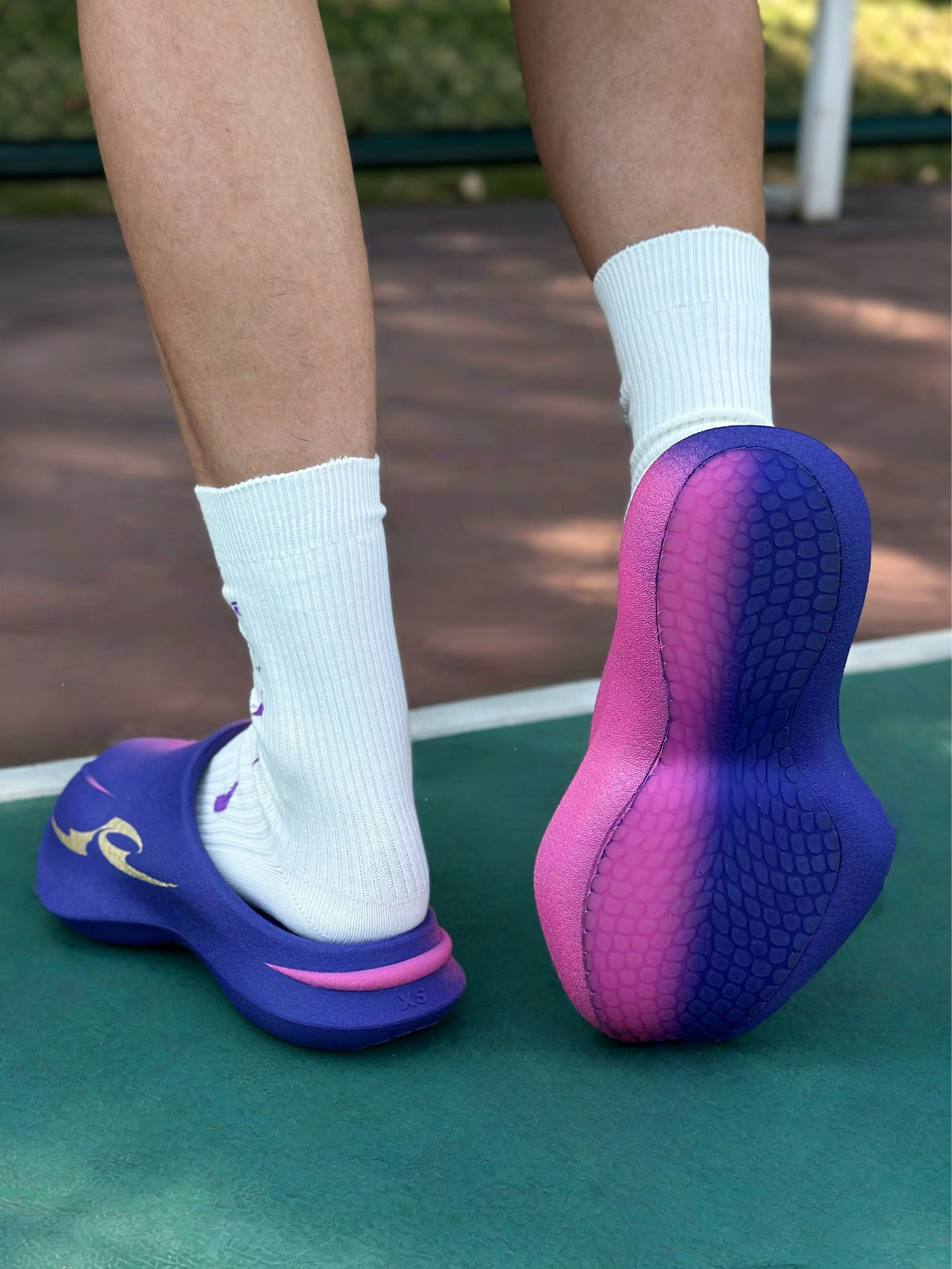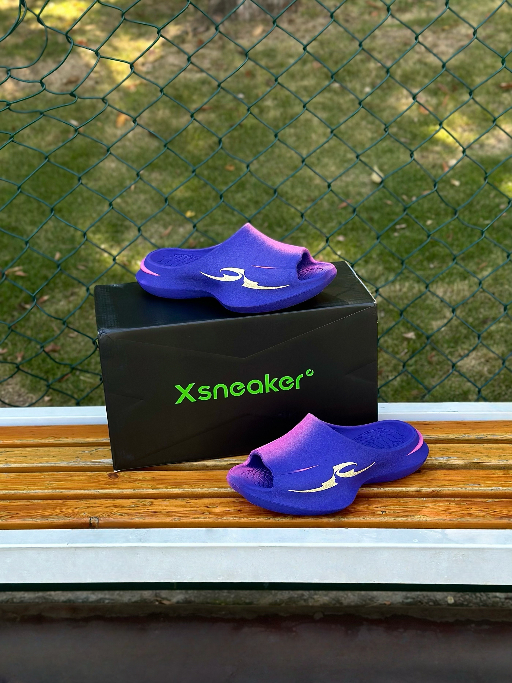 发现一双好酷的一体成型超临界拖鞋, xsneaker曼巴拖~ 这款配色的名字也很有诗意 「八千里路云和月」 它以紫色为韵,缀金色为辉,染粉色为梦 多巴胺撞色设计上脚简直不要太吸晴✨。 同时整体的造型设计也很新潮, 搭配上蛇元素,致敬曼巴! 主要加厚的中底踩起来也很软弹, 平常休闲出街,打球穿都OK! 尺码方面建议选大一码哦…
