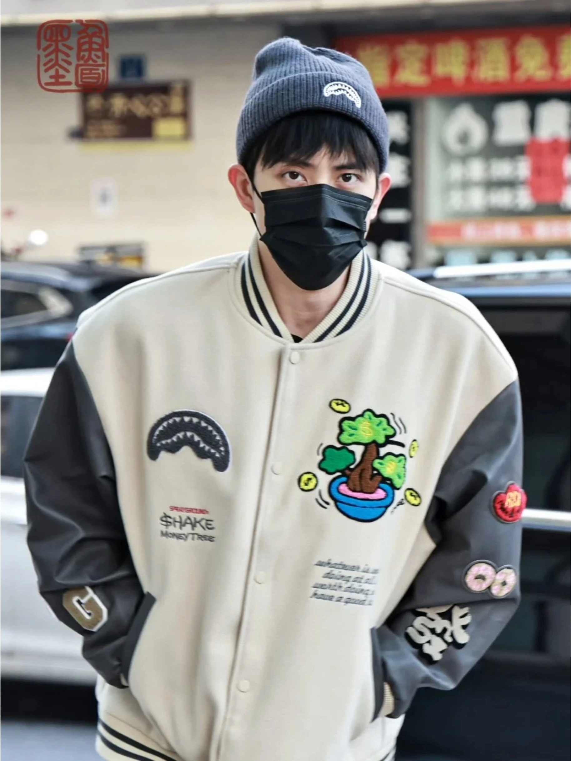 帽子:SPRAYGROUND sg鲨鱼小Logo鲨鱼嘴纯色 腈纶 绒线帽 男女同款情侣款 上衣:SPRAYGROUND x 摇钱树 联名款 sg鲨鱼小Logo植绒刺绣棒球服 男女同款 裤子:NAICHA STUDIO 美式vibe高街基础款纯色时尚大口袋设计感舒适简约潮流长裤户外机能风百搭宽松垂感直筒休闲裤 男女同款 图源于网络,侵删