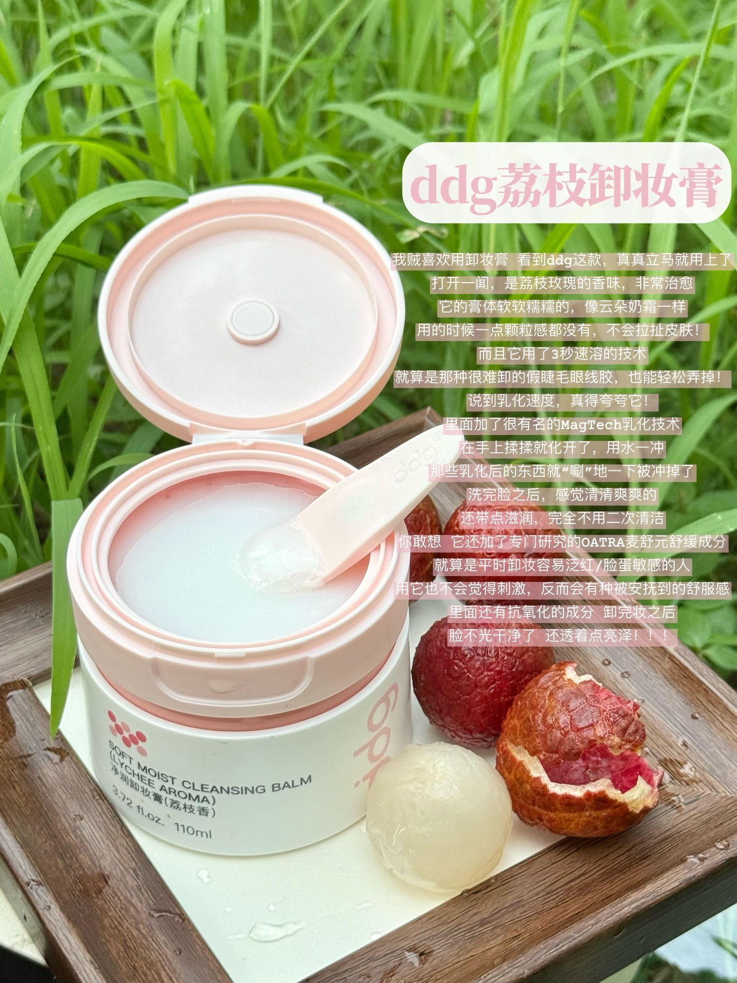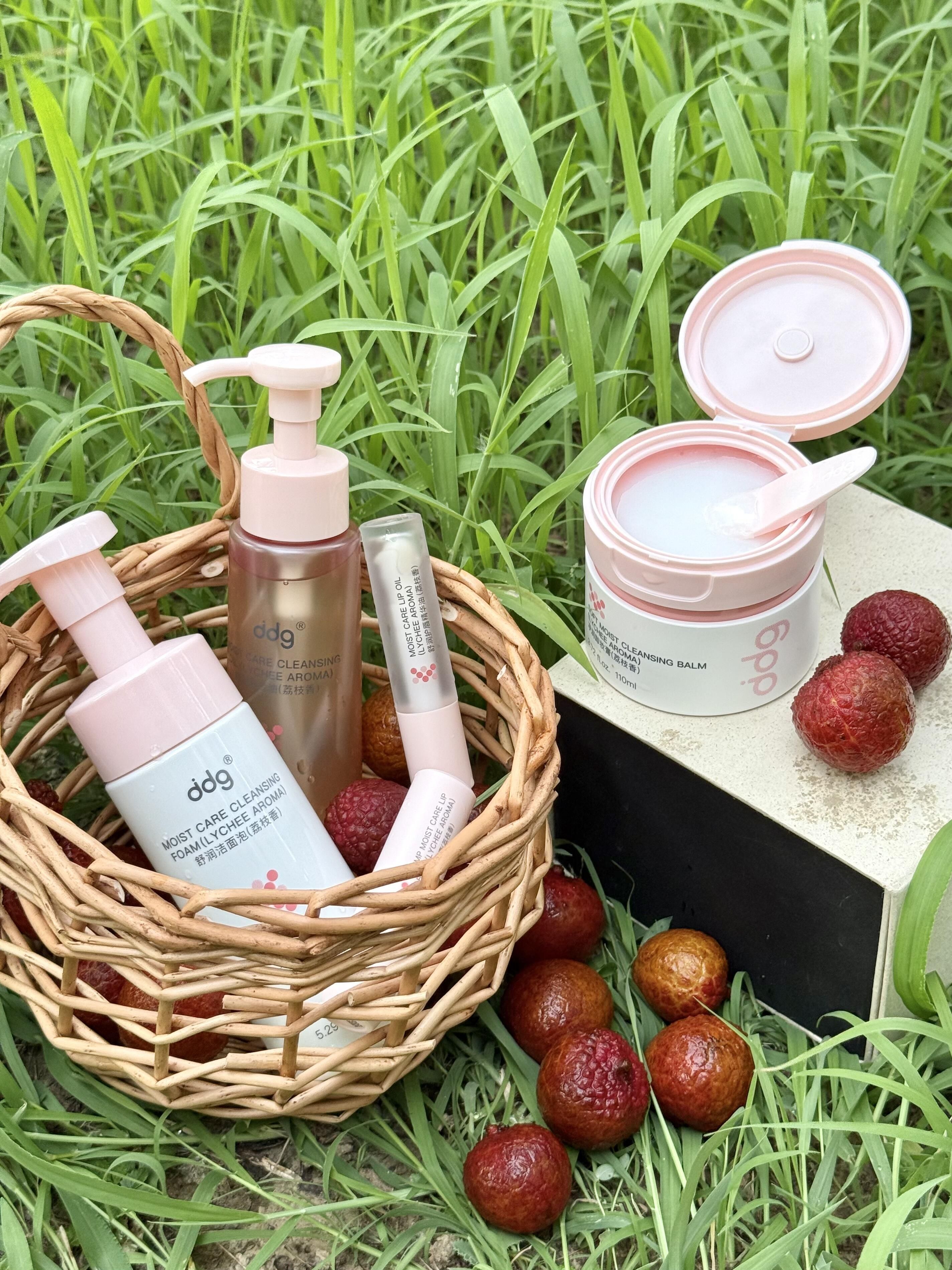 不是我就想问问ddg的研发师真的没有瓶颈吗? 新出的荔枝系列 刷到了一次又次一次! 终于还是忍不住入手了!!! 话不说多,测评开始 拆开包装的瞬间像闯进荔枝果园 清甜的果香扑脸而来,连闷热的空气都变清爽了! 而且这波新品真的长在我刚需上 从卸妆到护唇一套配齐 实用到想给研发师加鸡腿!🍗 ddg荔枝卸妆膏 ddg荔枝卸妆油 ddg荔枝洁面泡 ddg荔枝淡纹唇膏 ddg荔枝唇油 真的会被这种把...
