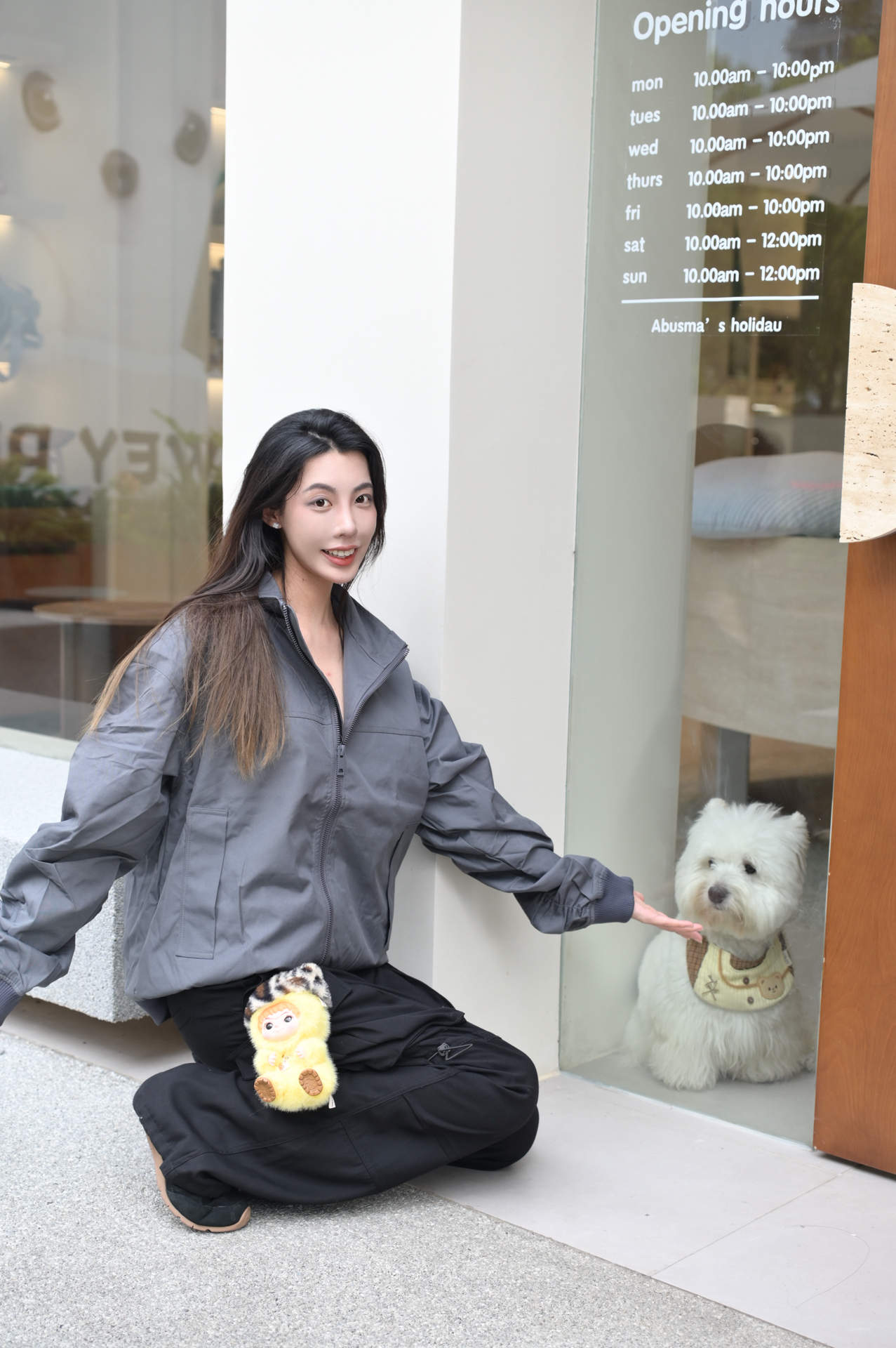 杭州新地标 山泽里 随手一拍就是大片! 今天拍的这家店是专门做宠物买手店的! 里面都是各种品牌的宠物用品! 门口还有一只超级可爱的小狗🐶 我今天这套ootd纯纯入秋通勤穿搭! 属于说基础不会出错款!尤其是灰色的这款夹克 搭配我今天穿的工装裤也可以 西裤 牛仔裤都是完美驾驭 这款当情侣款真的不错 👍需要实穿行单品一定要选它! 山泽里真的超级好逛 不仅仅只有这个宠物买手店还有很多潮流品牌 还有好吃...