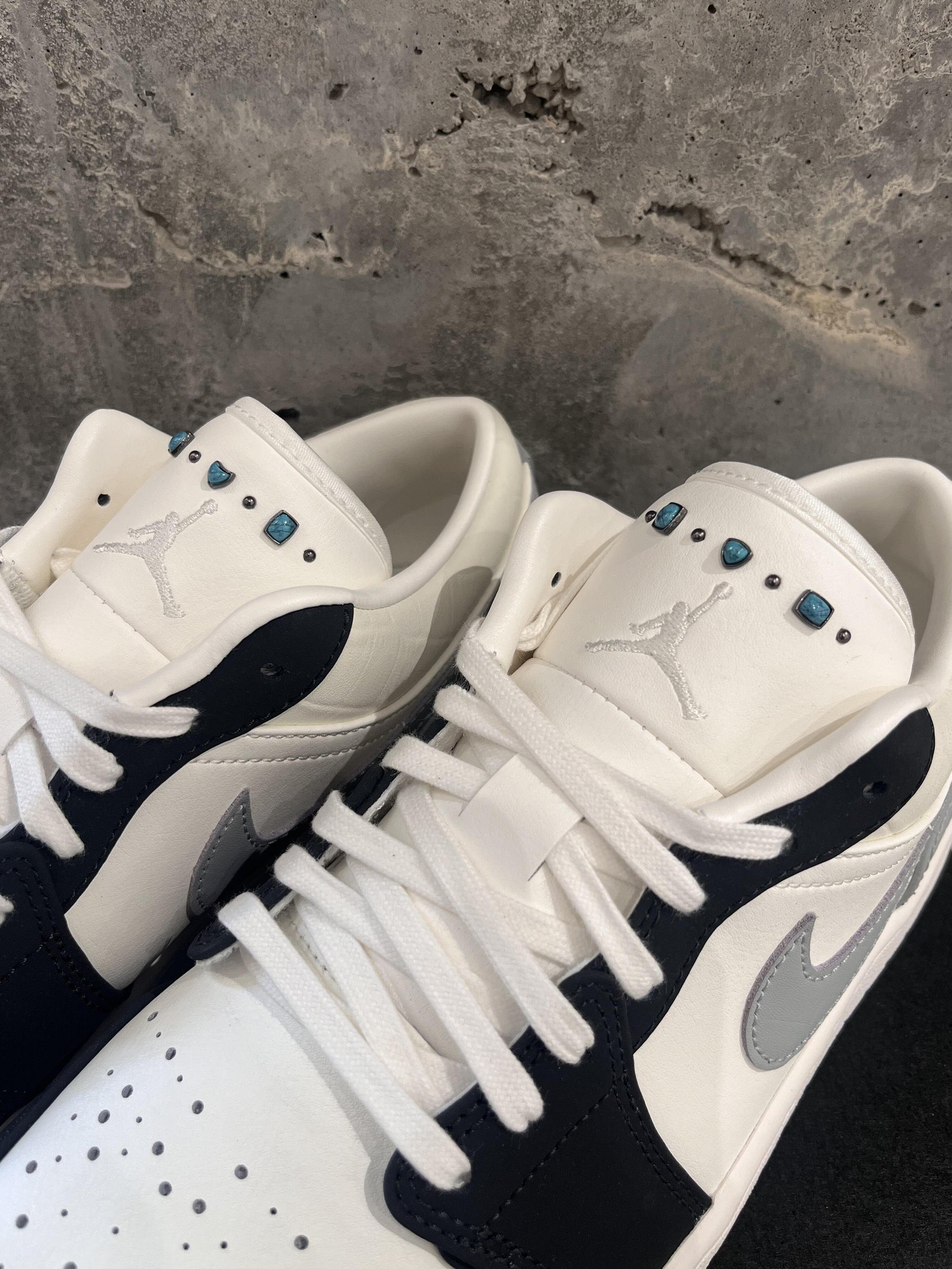 好特别的一双 灰黑的碰撞 鞋舌上带有绿松石低调的轻奢感 太棒了