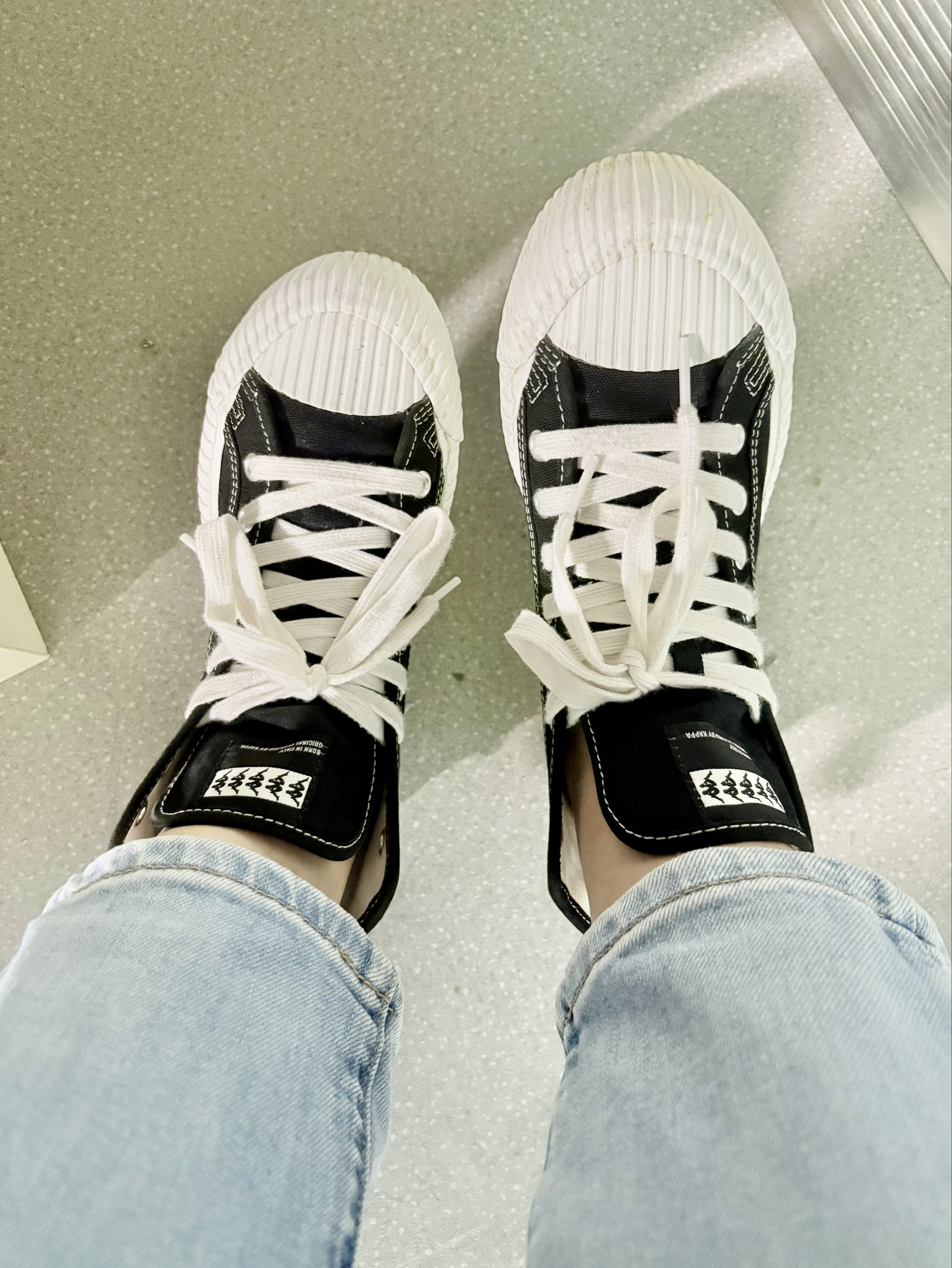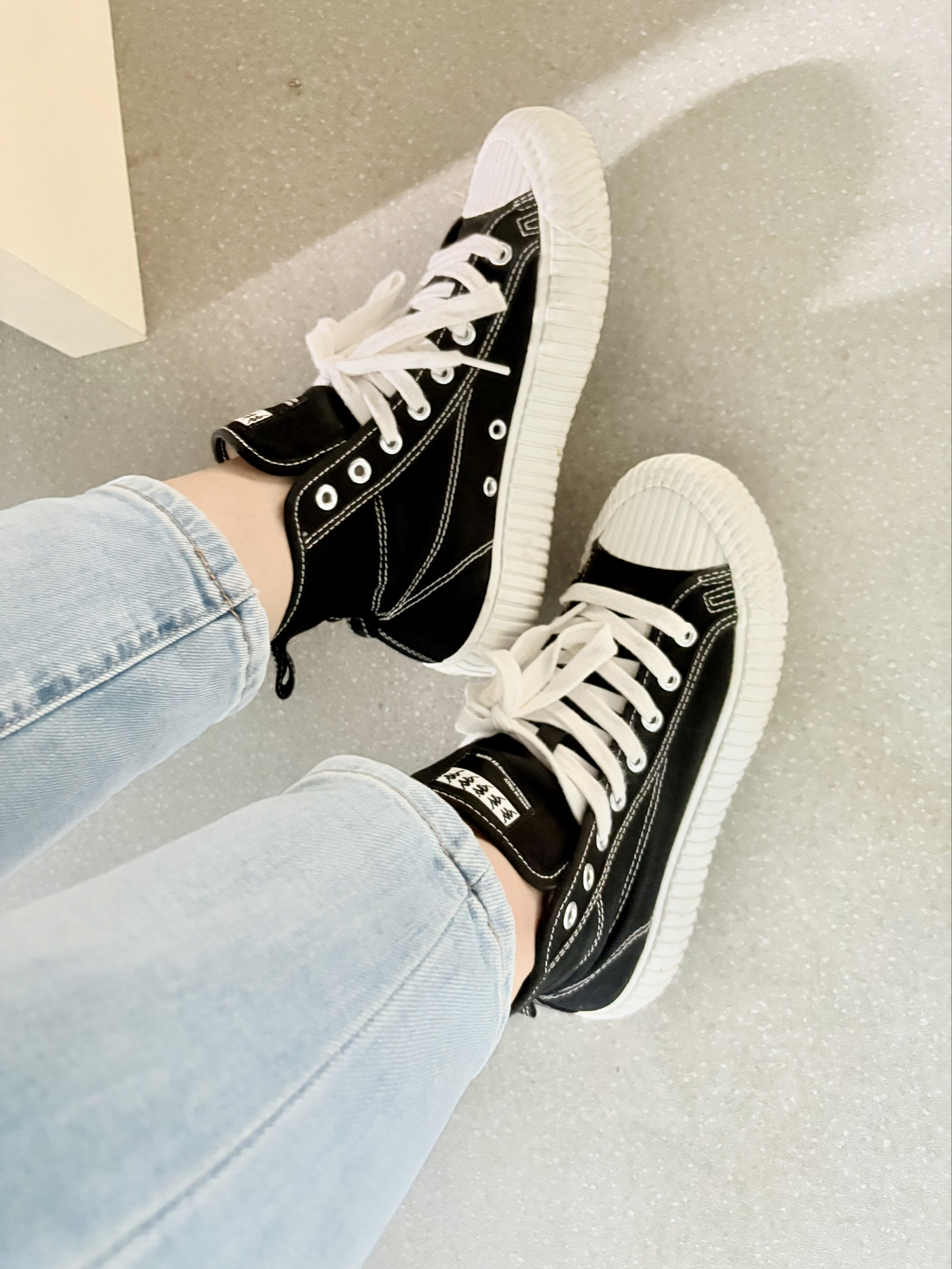 卡帕这双帆布鞋已经是买的第二双卡帕了😄 第一双是海贼王联名款,因为好看又不贵,所以今年又给自己买了一双黑色的😎 这个有点面包鞋的感觉,穿着鞋头那有点闷脚,其他位置没事,价格也不贵,鞋底比一般的帆布鞋厚,脚感也更舒适,鞋面的走线也不错,穿着挺显腿长的😘 主要是价格不贵,性价比挺高的😄
