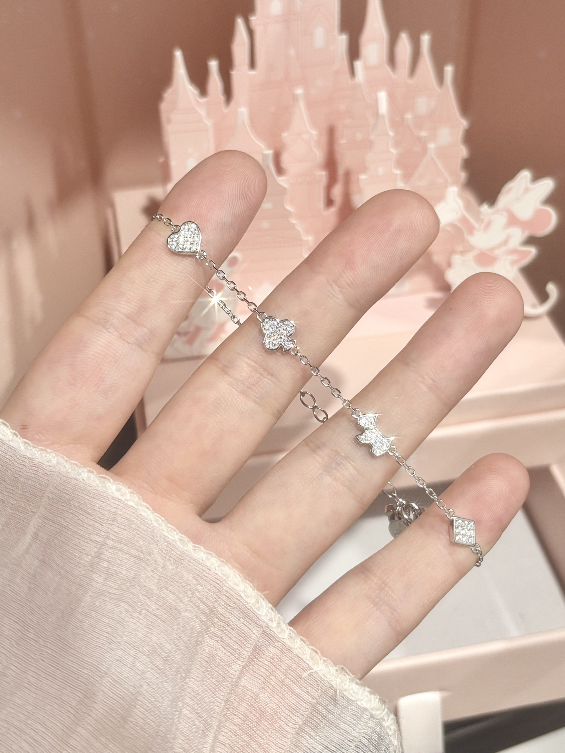 就是这条法式女王手链啦 是我平时常戴的风格 简约又有点偏小众的感觉哦 我穿休闲装和裙子都挺适合戴的 还有迪士尼的这个礼盒也很有少女感 粉粉的城堡女生都会心动吧~