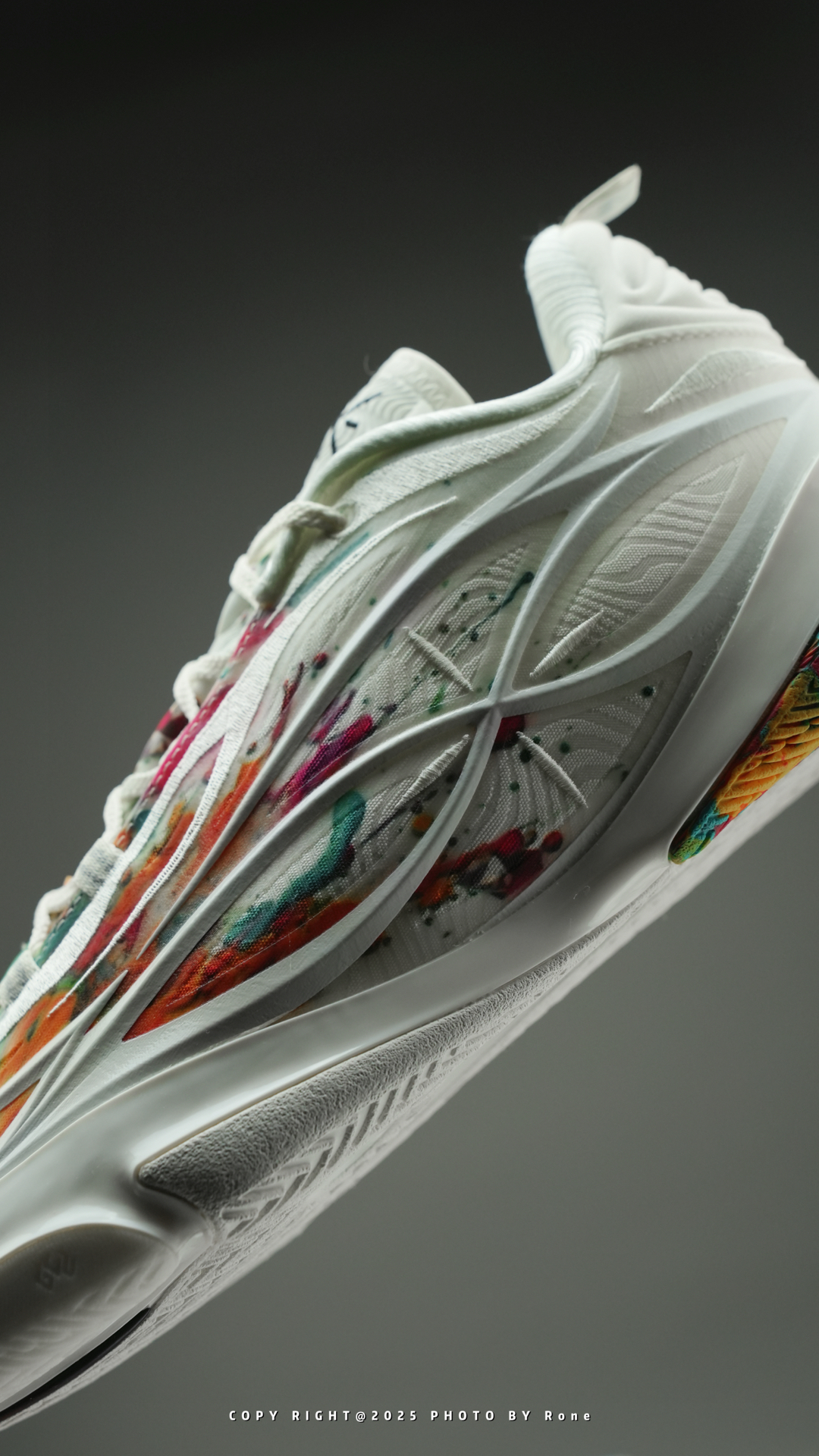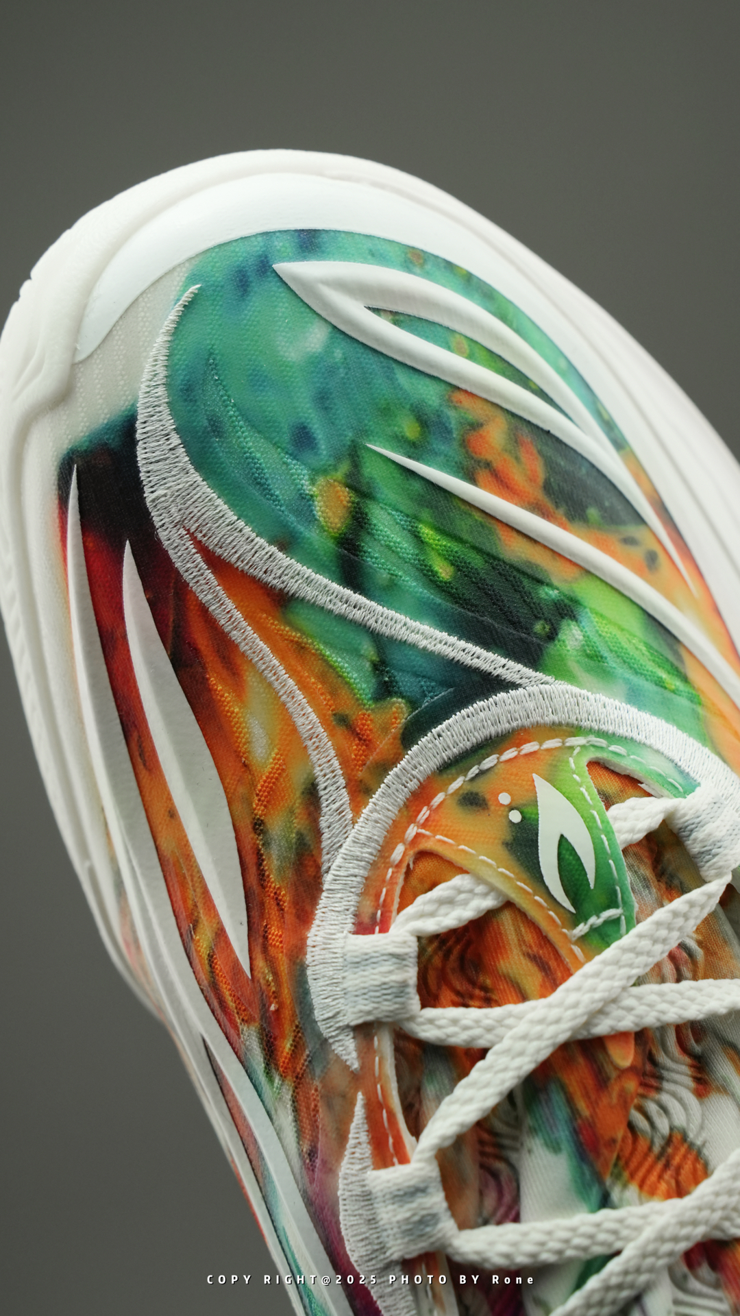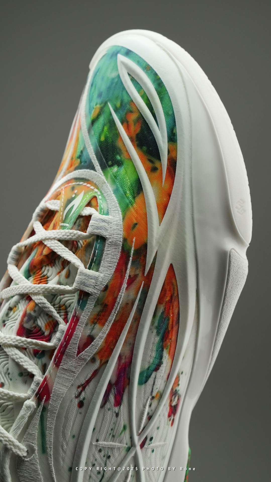 要说韦德支线实战鞋里我的最爱,必须是808 5 ULTRA!没想到这么快就迎来了V2升级版,一整个惊喜住!🎆 我手上的这双“烟花配色”,鞋面以白色为主,鞋头渐变炫彩,像夜空中绽放的烟花~ 它的内嵌超䨻中底,静态上脚感觉缓震回弹比其他球鞋明显更弹,全掌TPU+碳板结构,抗扭支撑也很到位,橡胶外底比较适合木地板,抓地力优秀!实战脚感真心能打,颜值还这么顶,谁能拒绝啊! #韦德之道808五代 #李宁韦...