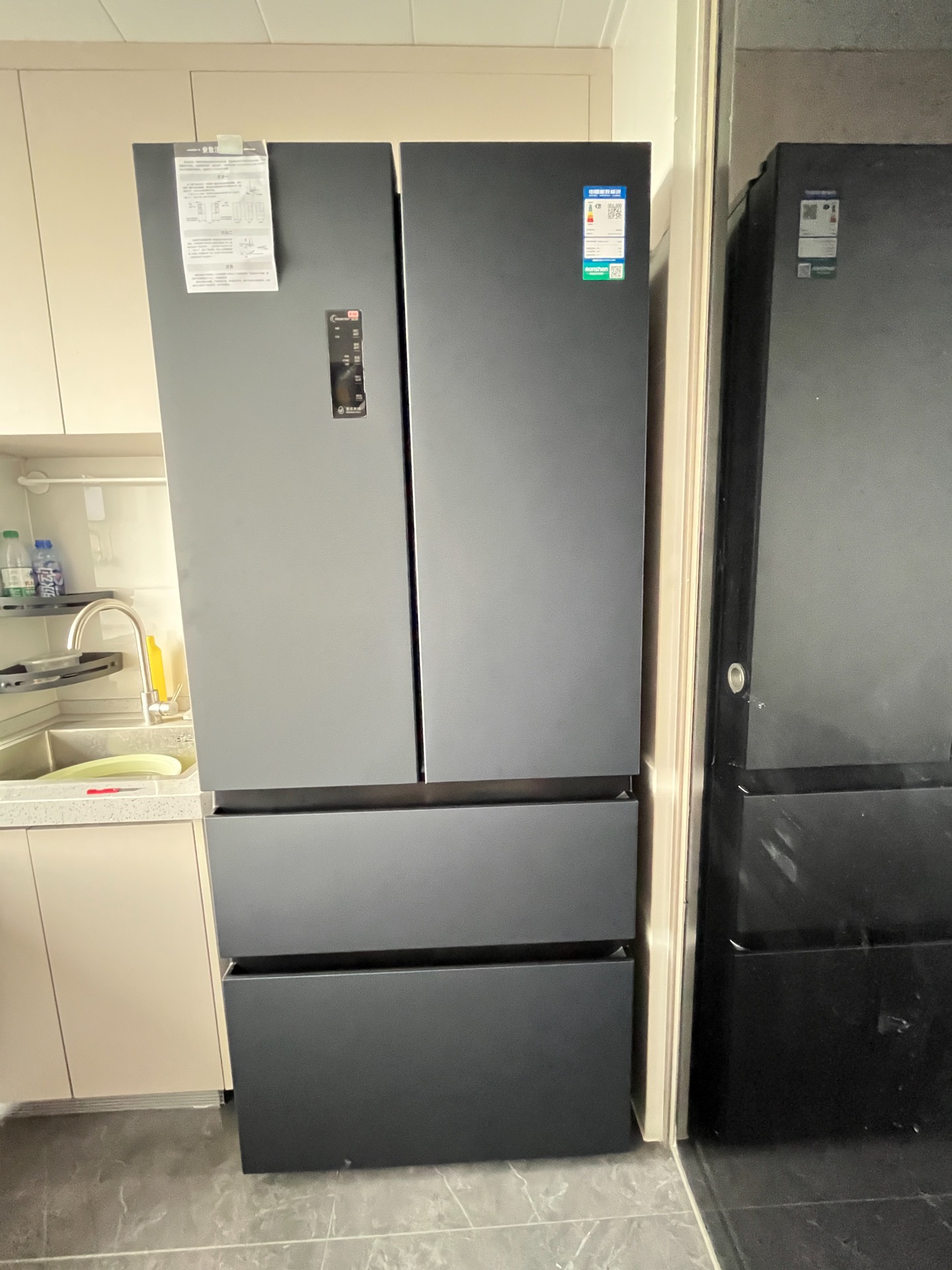 我租的房子厨房空间不大,挑这台冰箱就图它能嵌入还容量大~526L日常囤菜囤零食够够的😋。今天刚送到,外观是简约的灰色,和我家厨房风格还挺搭~一级变频节能,还有净味除菌功能,期待后续使用效果啦~