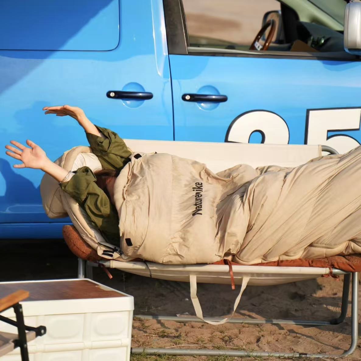 在乌孙古道徒步时遇上下雨,到营地后钻进黑冰 B700 睡袋,鸭绒保暖性绝了🔥!就是木乃伊式设计对我这种爱翻身的有点拘束,但抗静电这点太加分,不会噼里啪啦啦~