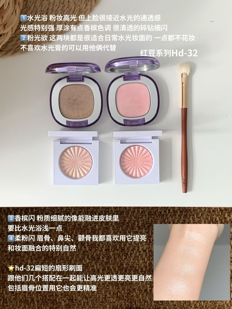 本篇笔记关联了NyceMakeup 高光 哑光提亮阴影闪粉细闪 3.2g 白盒、ofra 单色高光 水光质感自然提亮丝滑 3g 03香槟金闪peppermint 、HERORANGE 单色哑光高光眼影 03肤色等商品,为用户提供真实的使用体验和购买参考。