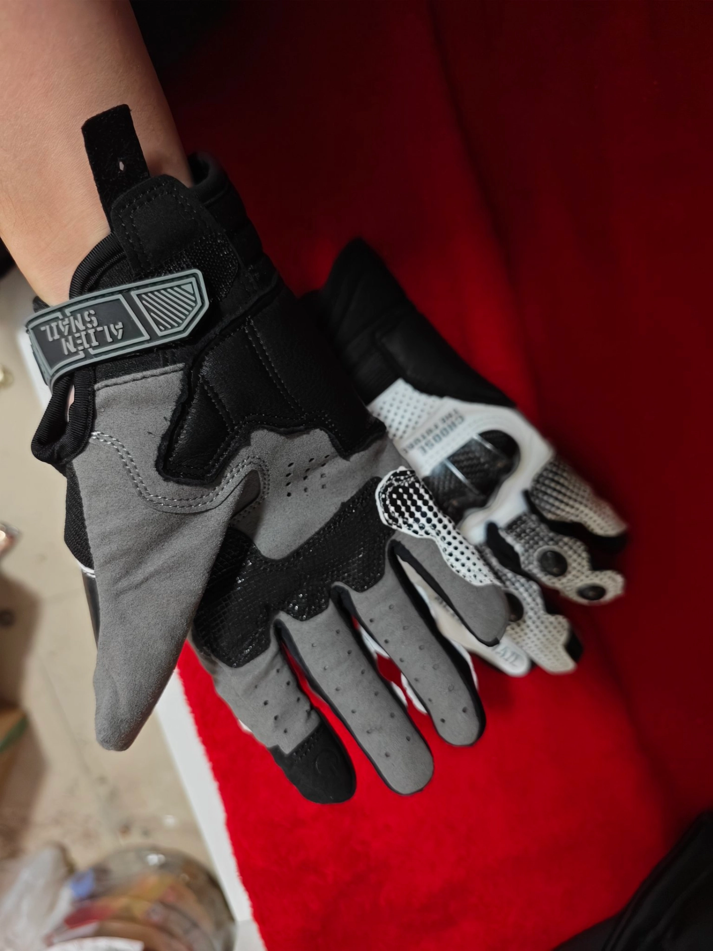 我入手的第一双骑行手套!光看照片就被颜值戳中,拿到实物更帅,黑白配酷得很~拇指那还有碳纤维防护,安全感拉满👍。200来块性价比没话说!透气性热天戴不闷,就是冬天骑有点冷,毕竟不是专门的冬季手套~但春秋骑太舒服啦,爱骑车的宝子可以冲👏!
