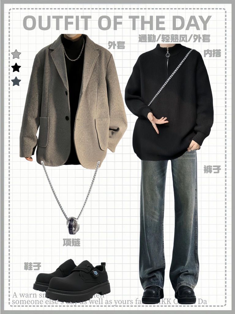 165-185男生秋季穿搭推荐|小众高级入冬穿搭 #潮流黑市[话题]# #笔记灵感[话题]# 小伙伴们,秋天到了🍁,是时候更新你的日常穿搭啦!👀今天来为大家推荐实用,能提升整体质感的基础外套——日常休闲夹克外套💼👔不仅显高还适合165~185cm的男生穿着,完全不限制身高哦!🍃 👏GET以下几点,帮您摆脱不会穿搭的困扰: ⬛职场文艺风 职场里清爽干净的穿搭,一直都是微笑的通行证💳! ⬛稳重绅士...