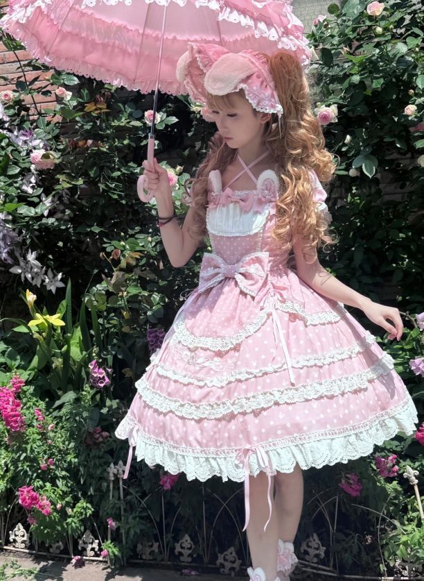 在花丛里闯入一只lo娘小精灵✨ 穿着这条粉扑扑的小裙子,蕾丝层层叠叠的,转个圈就能把满院的花香都裹进裙摆里~ 就像抱着一团云朵在散步,每一步都像踩在棉花糖做的梦里🌸