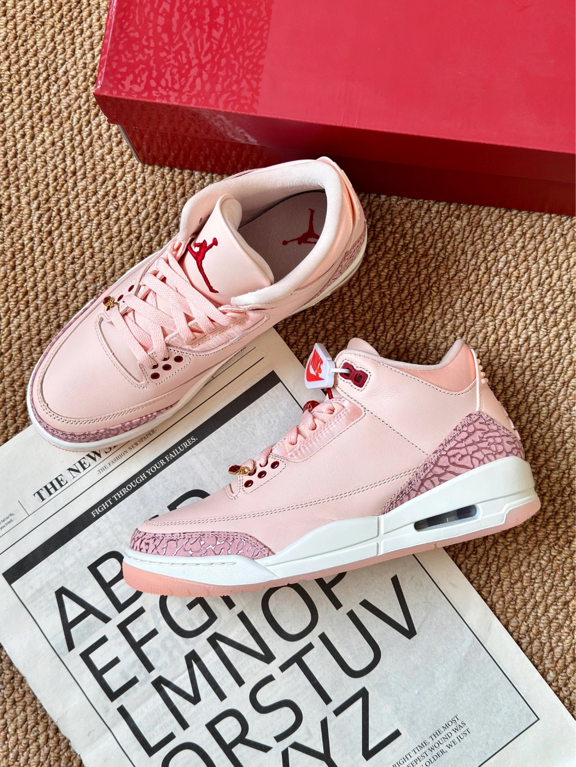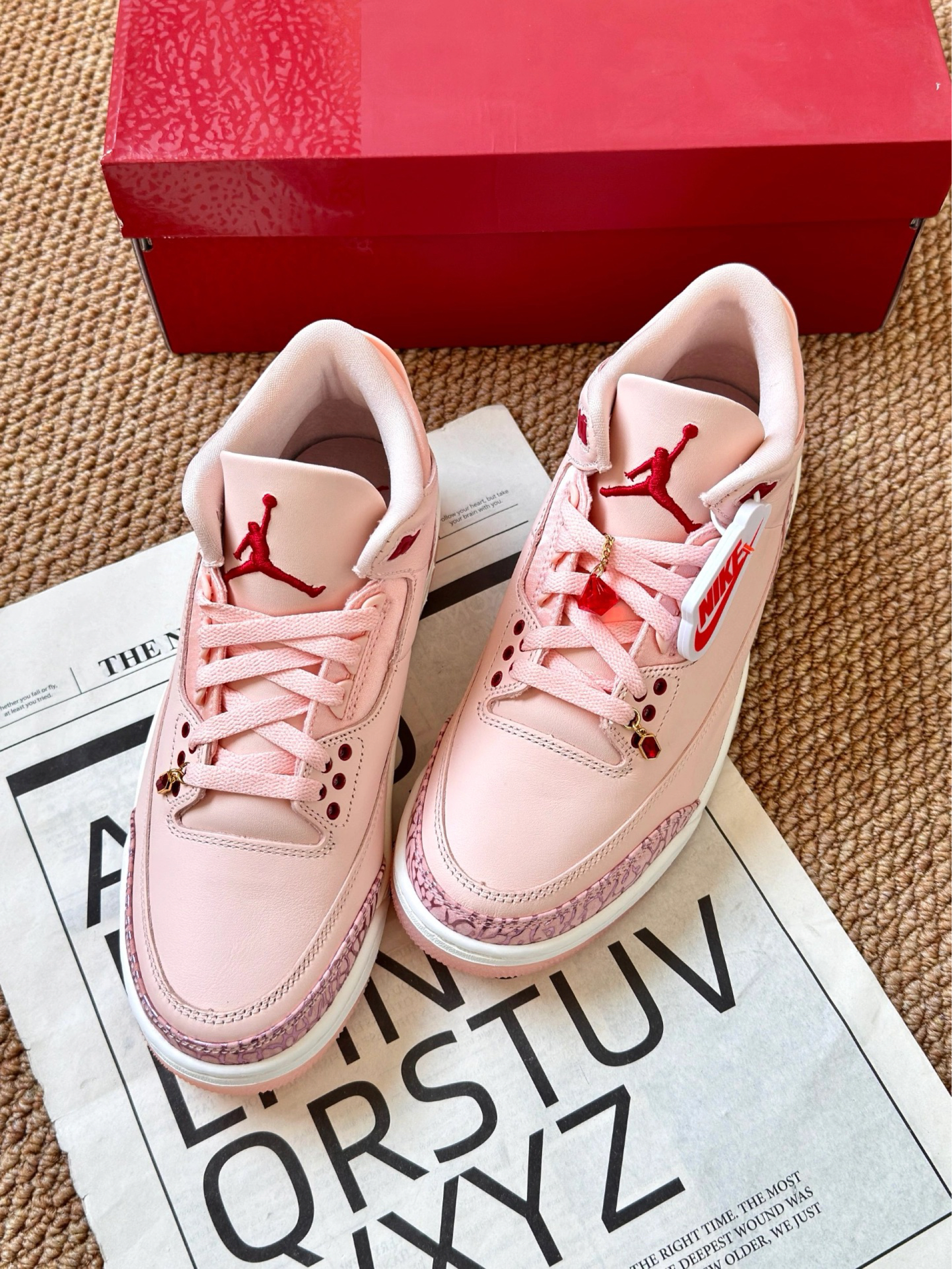 本篇笔记关联了Air Jordan 3 运动休闲鞋 潮流复古抓地支撑缓震合成革圆头 情人节限定/女款/嫩粉色等商品,为用户提供真实的使用体验和购买参考。