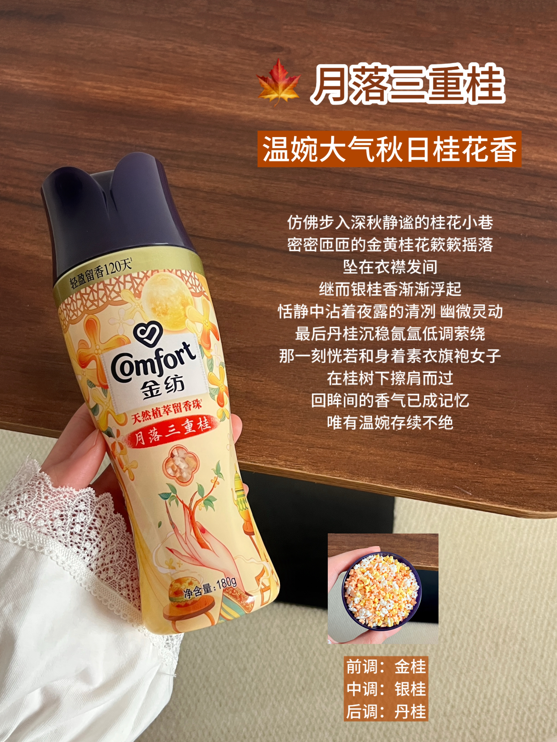 本篇笔记关联了comfort/金纺 多香味 200g 焕新护衣留香珠 持久清香除螨宿舍好物除菌洗衣服薰衣草 蓝风铃海盐、comfort/金纺 多香味 200g 焕新护衣留香珠 持久清香除螨宿舍好物除菌洗衣服薰衣草 薰衣草香紫苏、comfort/金纺 180g 多味留香珠 瓶装 护衣除螨除菌持久留香 月落三重桂等商品,为用户提供真实的使用体验和购买参考。