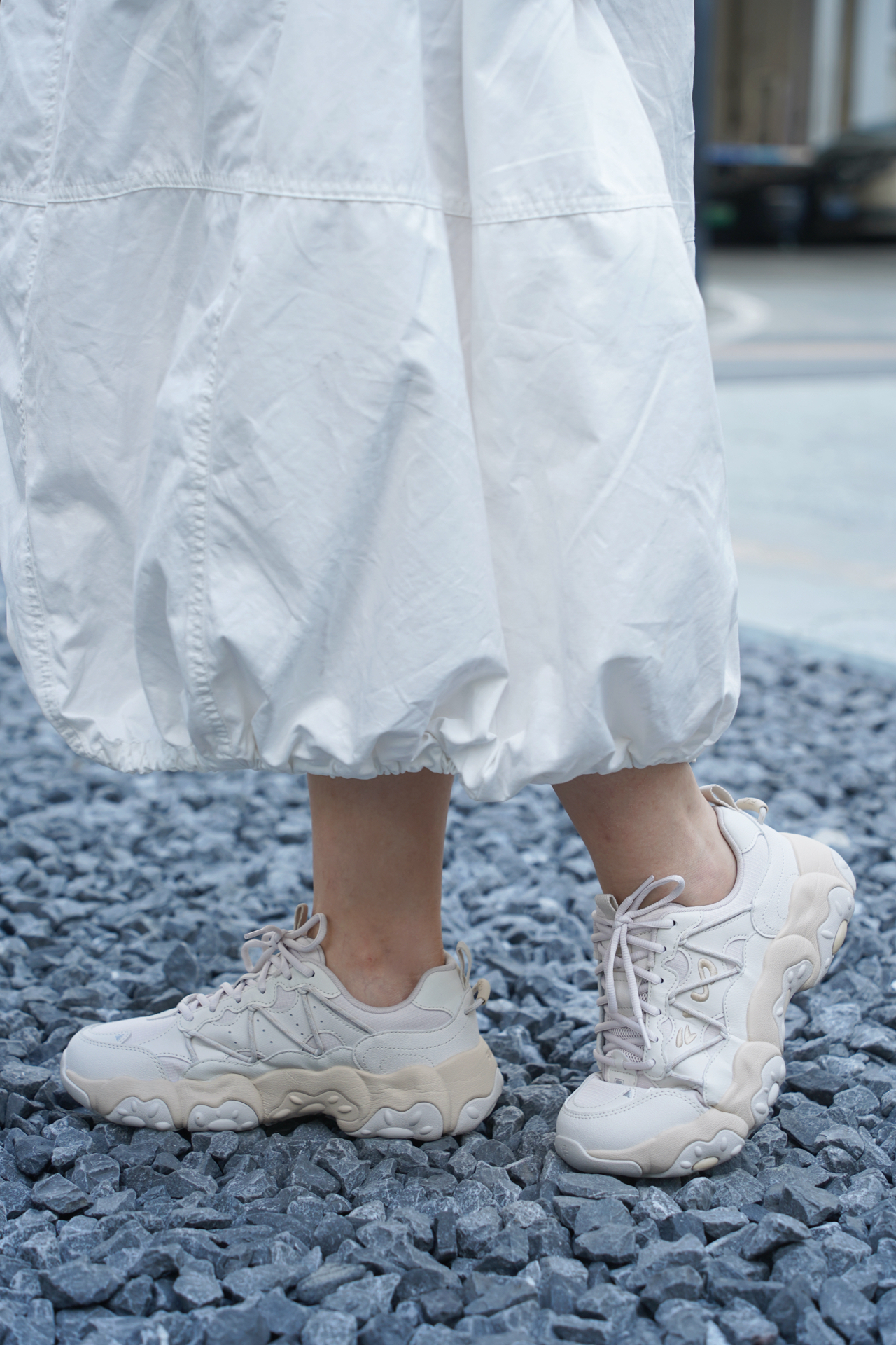 不得不说 复古风真的很难过时 这些年一直最火的依然是老爹鞋 入秋之后很爱类似的风格✨ 米白色和服装正好呼应 在夏秋转换的季节就很应景🍂 双鞋带解构风加上复杂的结构纹理 设计感足够好啦 可淑女可街头感随时切换👟 简单垮个包就能美美出门约会啦 #FILA斐乐 #今日份秋季新look #预热一下秋冬穿搭 #穿搭博主ootd #约会穿搭硬通货
