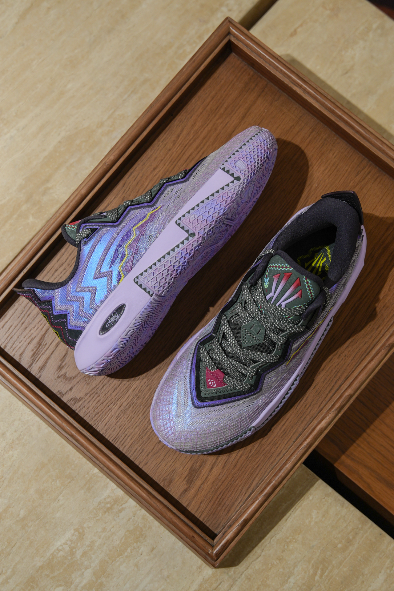 8 月 24 日曼巴日发售的安踏 KAI 2 “铭记” 配色,是欧文与科比精神的深情联结。鞋身以黑紫为主调,鞋舌刺绣欧文 Logo 与科比剑鞘标呼应,鞋侧暗藏 “24” 数字纹路,细节满含致敬。 设计上延续实战基因:全掌氮科技中底 + 碳纤维抗扭片,回弹强劲且支撑拉满,适配欧文标志性变向。鞋面采用透气网布拼接麂皮,质感与透气性兼顾。 作为欧文签名鞋续作,“铭记” 既保留欧文赛场风格,又融入对科...