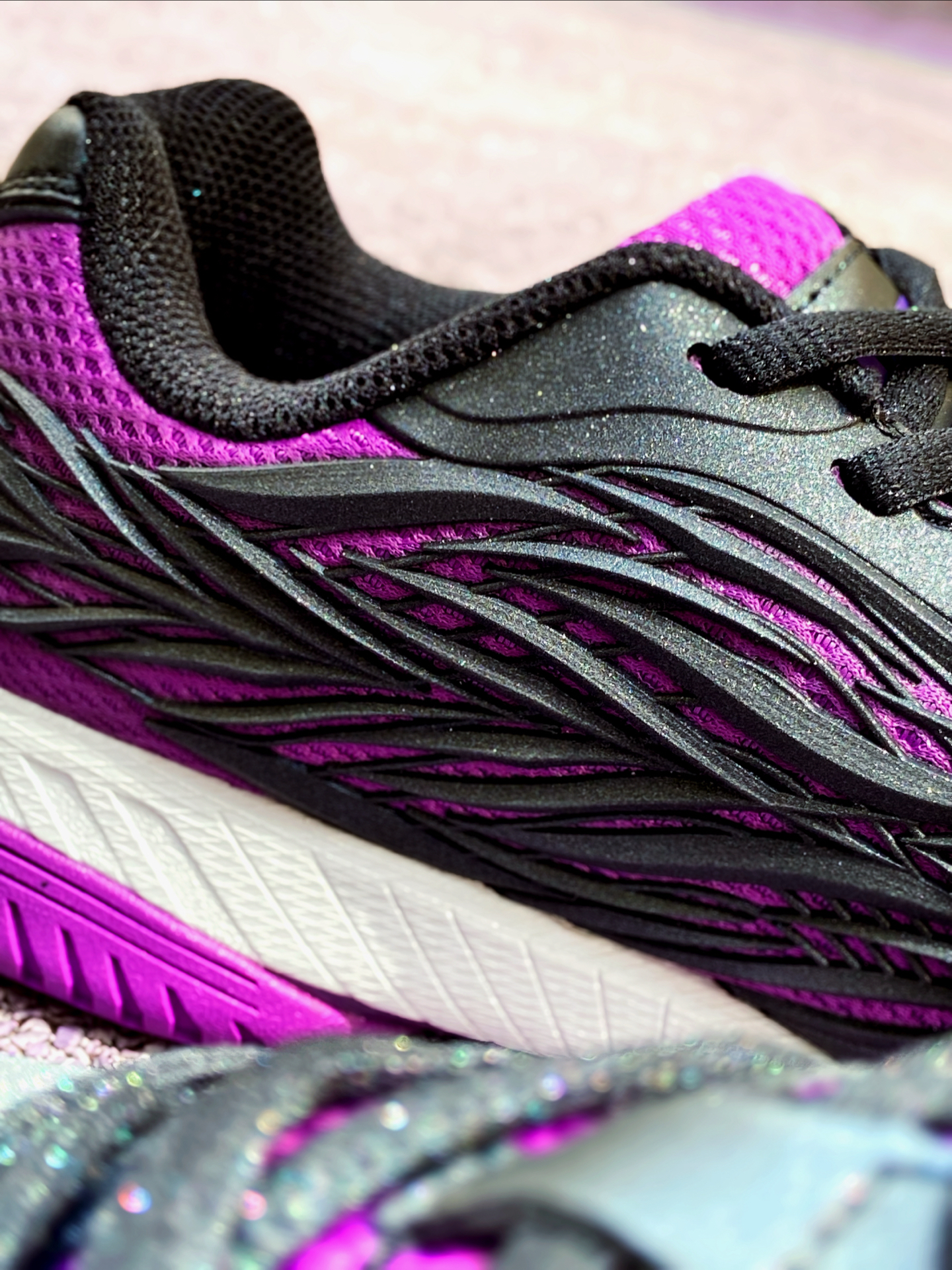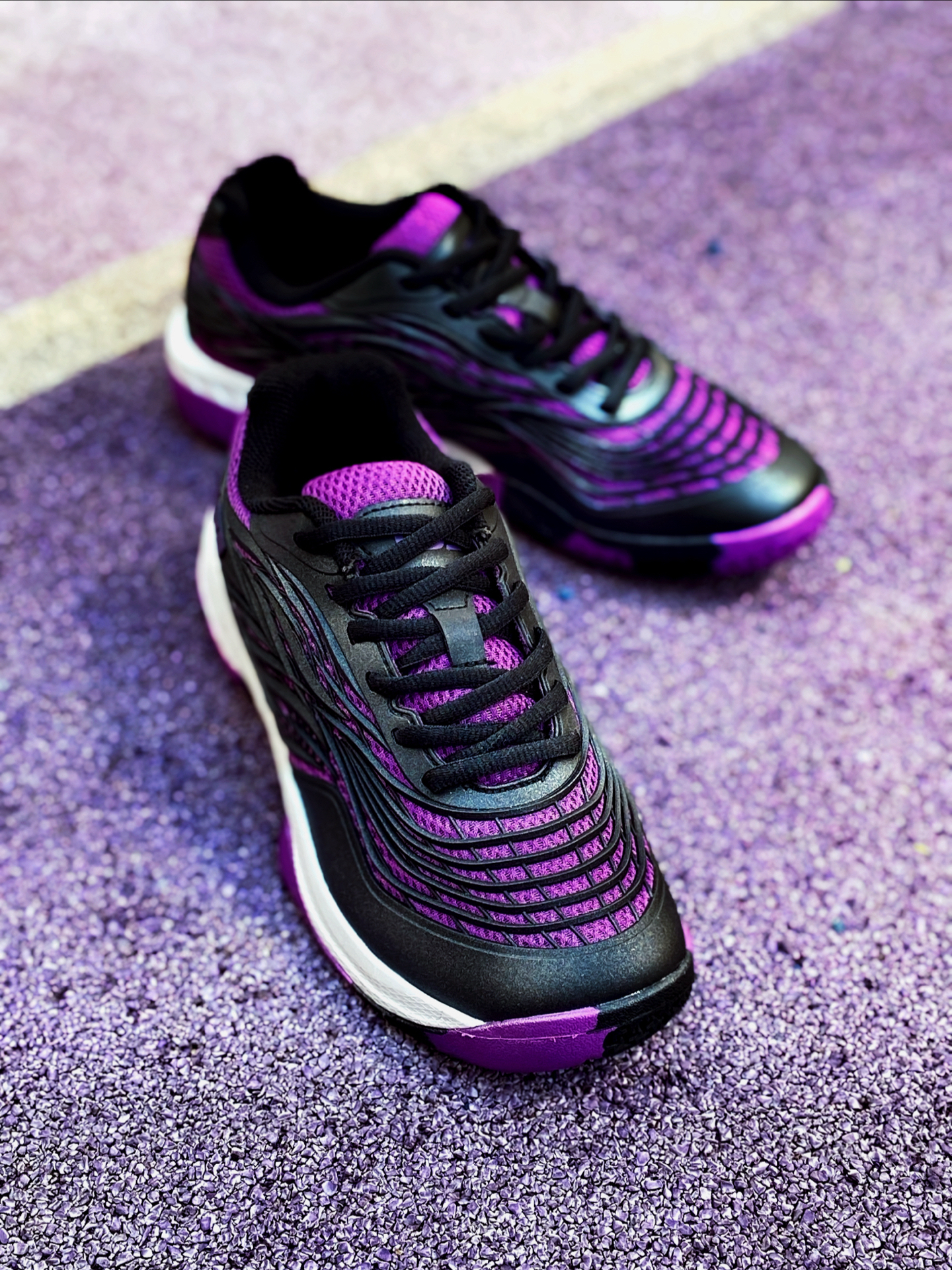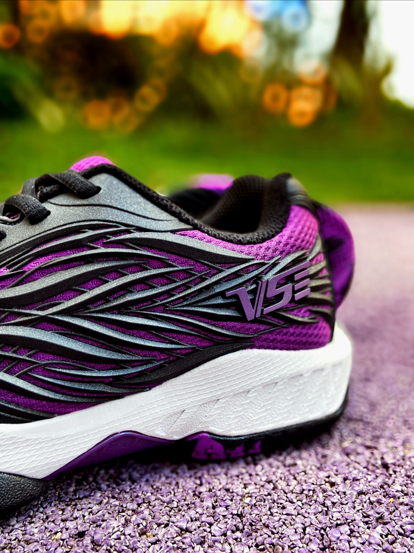 挑来挑去,终于让我找到这款 #威臣 的刺客系列羽毛球鞋。黑紫撞色设计+羽毛感线条纹理细节,这颜值完全长在我的审美点上 。 鞋面采用透气网布+KPU革拼接,包裹感十足却不紧绷,也不压脚背。鞋底纹路很深,抓地力和防滑绝了,打球时启动超快,急停也是稳稳的,中底缓震蛮到位,跳杀落地膝盖都没咋震。 颜值和功能双双在线!我觉得日常打球、出街都没问题,而且无论你是小白还是老手都能轻松驾驭,码数方面正常选就...