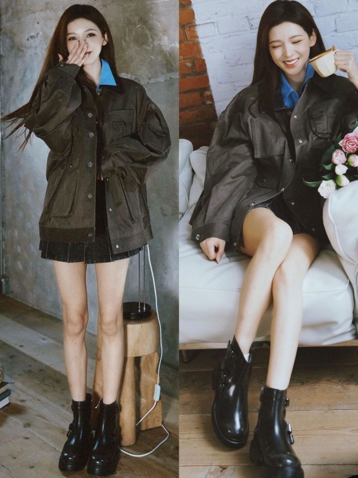 张予曦真的终于被越来越多人看到了!像最近热播的《巴黎合伙人》就让人更实实在在感受到她的魅力! 今日份营业穿搭,一套复古风造型好吸睛👀——棕色外套搭配短裙,脚下的复古机车靴更是点睛之笔,整体造型又酷又飒。 咱就是说,张予曦这建模脸和身材都绝了,天生的衣架子,不管什么风格都能轻松驾驭,穿搭经常能让人眼前一亮👀 素材来源于网络